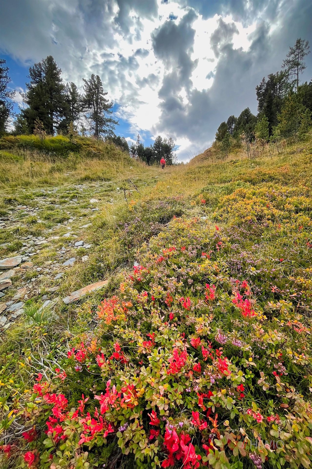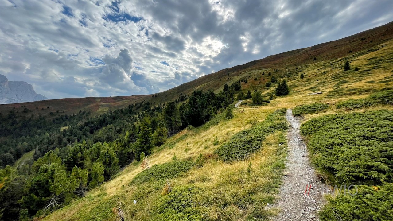 Schließlich mündet er in den breiten Wanderweg Nr. 1, der sich vor der verträumten Kulisse des nahen Peitlerkofel durch lichte Waldstücke und sanfte Almwiesen zur nunmehr recht nahen Maurerberghütte schlängelt.