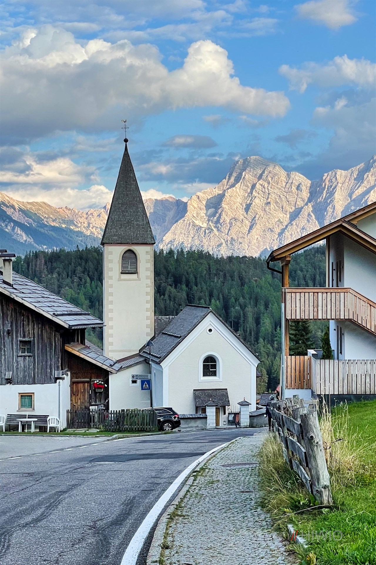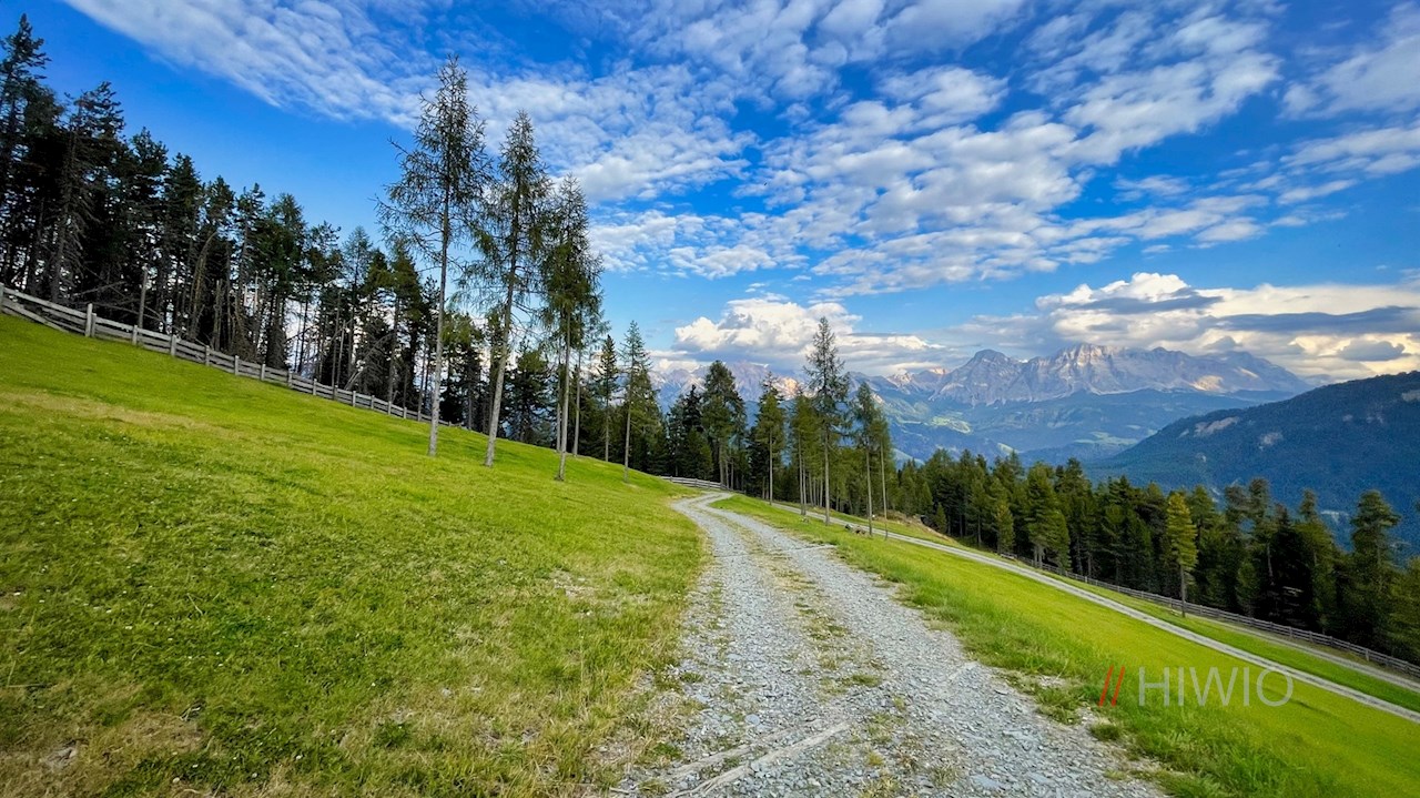 Dem Wanderschild Nr. 1B in Richtung Maurerberghütte folgend, wandert man zunächst entlang der Straße zum nördlichen Dorfrand hoch, an dem die Wanderung in einen kleinen Steig übergeht. Er führt im angenehmen Anstieg durch den Wald, der hie und da schöne Ausblicke auf die Dolomiten öffnet.