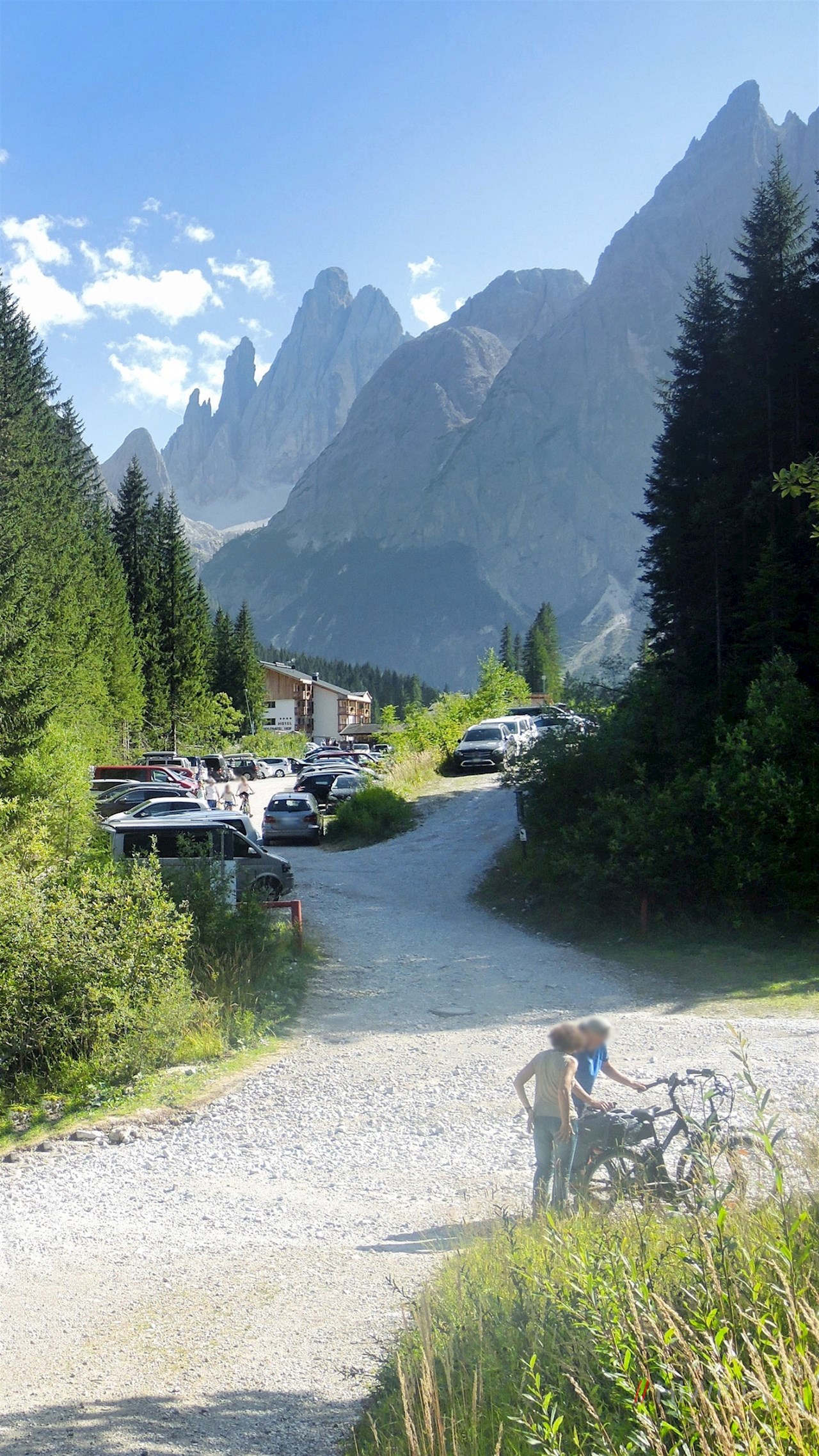 Vom Parkplatz der Fischleinbodenhütte, die vielen als Ausgangspunkt für die Wanderung zu den weltberühmten Drei Zinnen dient, fehlen nur mehr zwei km auf einem breiten Schotterweg, bis wir unser heutiges Tagesziel erreichen.