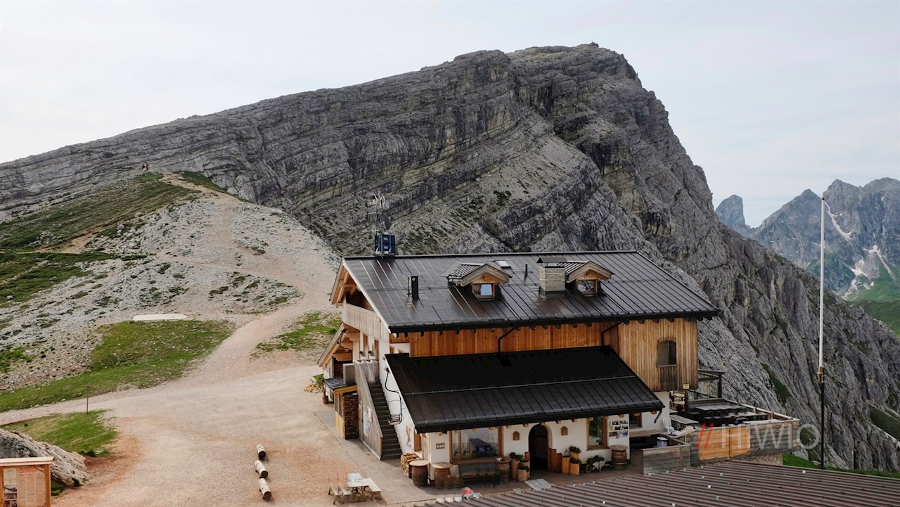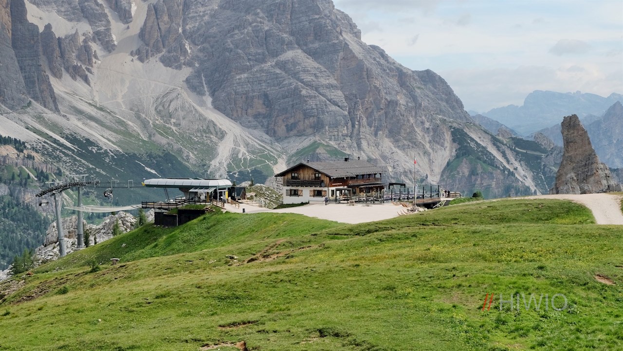 Zuvor aber lohnt noch der Anstieg auf den nahen Nuvolau, auf dem verwegen die gleichnamige Schutzhütte thront. Dazu wandert man südostwärts (Vorsicht: kein Wegweiser bei der Hütte) in Richtung des anfangs begrasten und später steinbeschlagenen Bergrückens. Im steten Anstieg gelangt man so zur Nuvolau Hütte auf dem Nuvolau. Am 11. August des Jahres 1883 eröffnet, war sie das erste Schutzhaus in den Bergen der Gemeinde Cortina d’ Ampezzo. Nahe der Hütte erschließt sich ein traumverlorener Ausblick auf namhafte Gipfel wie die Tofane, die Civetta, den Monte Pelmo oder die schneeverhangene Marmolada.