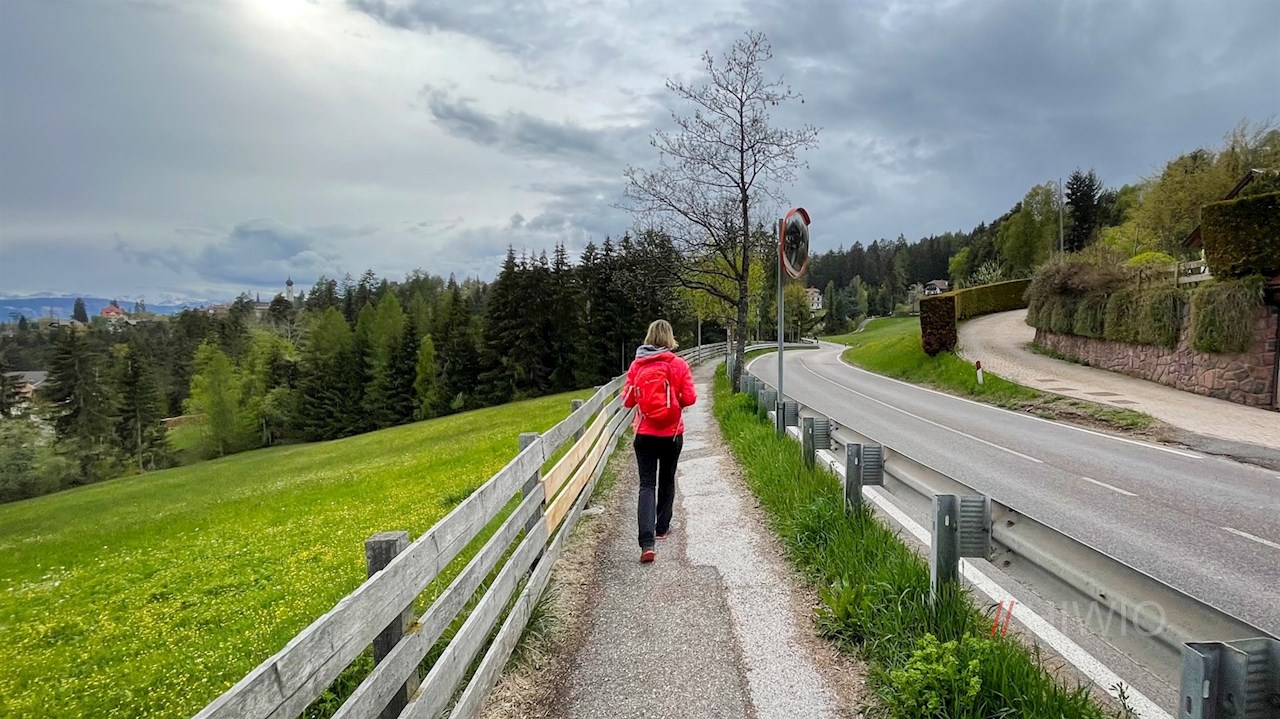 Zuletzt führt er entlang der Straße nach Oberbozen zurück.