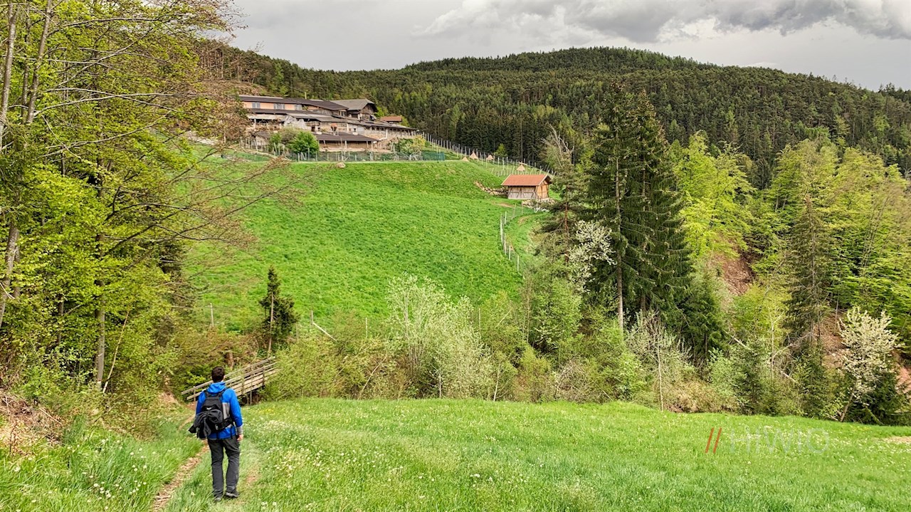 Beim Hof Buchhütt geht die Wanderung in den Weg Nr. 26A über, der sanft durch Wald und Wiesen nach Wolfsgruben ansteigt. Zuletzt folgt er kurz der Rittner Straße, neben der sich wenig später der Wolfsgrubener See ausdehnt.