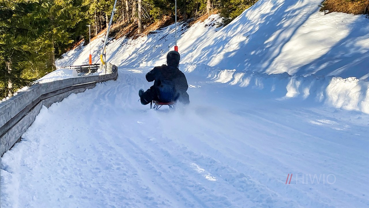Auf die genüssliche Einkehr folgt der schwungvollste Teil der Wanderung: die vergnügliche Abfahrt auf der 2,5 km langen Rodelbahn (die Abfahrt ist bis 17 Uhr möglich; dienstags, donnerstags und freitags wird die Rodelbahn von 19 – 22 Uhr beleuchtet; Stand 2022).