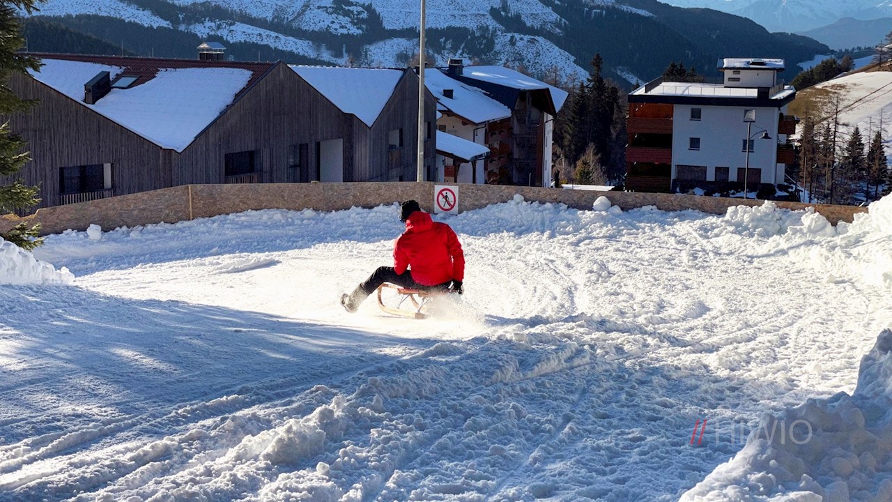 Parallel zur Rodelbahn zieht sich ein gebahnter, durch Holzplanken abgetrennter Wanderweg durch die verschneite Winterlandschaft zur Epircher Laner Alm, deren behagliche Gaststube und Panoramaterrasse auch im Winter vom verführerischen Duft der köstlich zubereiteten Südtiroler Gaumenfreuden erfüllt sind.