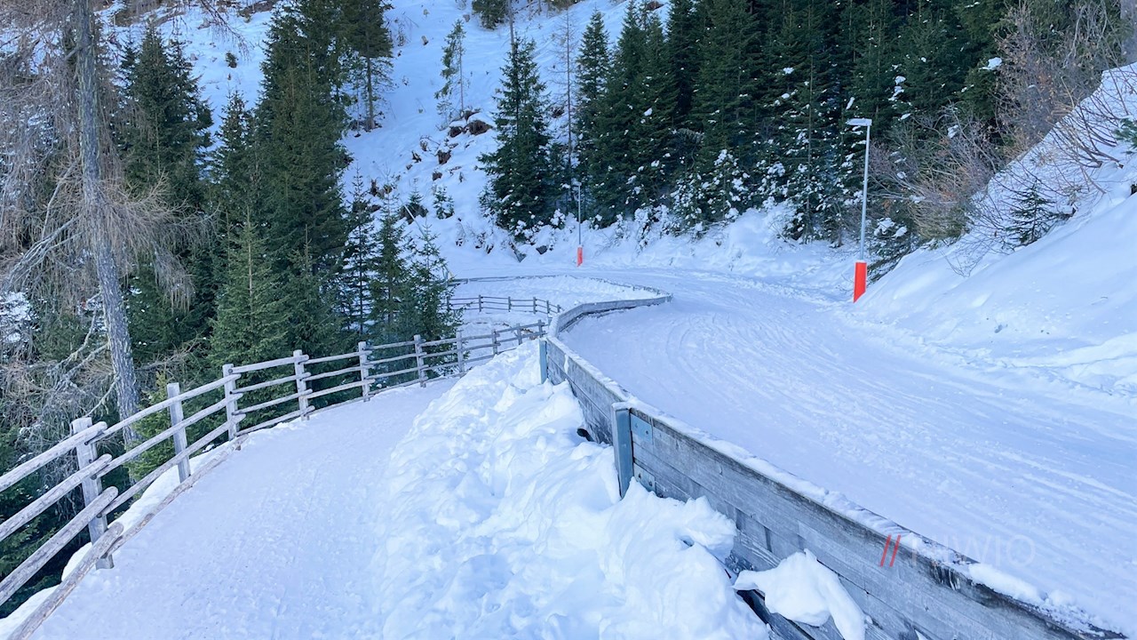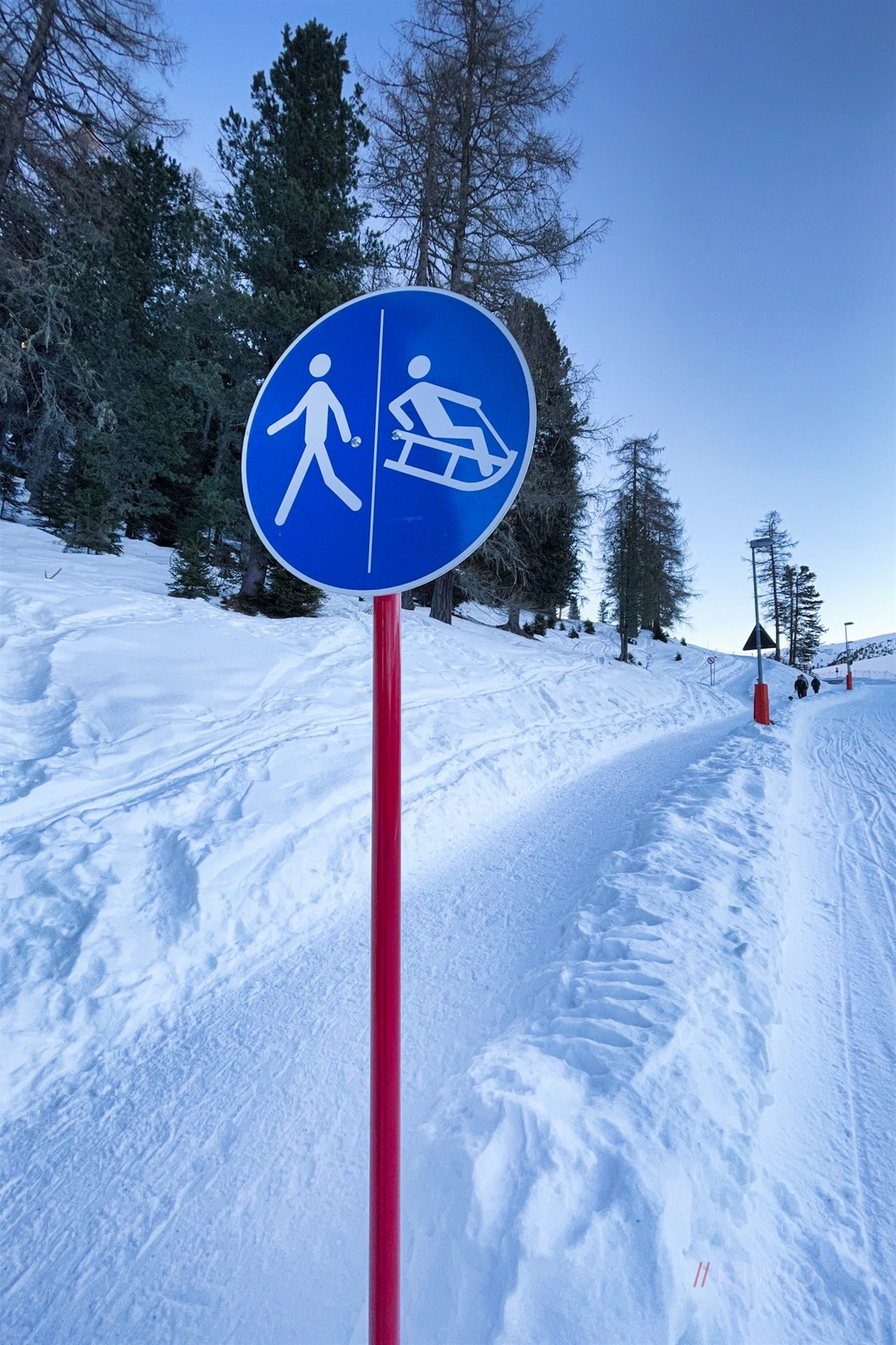 Der Straße nach oben folgend, gelangt man wenig später auf den Weg Nr. 18, der sich im Winter in eine vergnügliche Rodelbahn verwandelt.