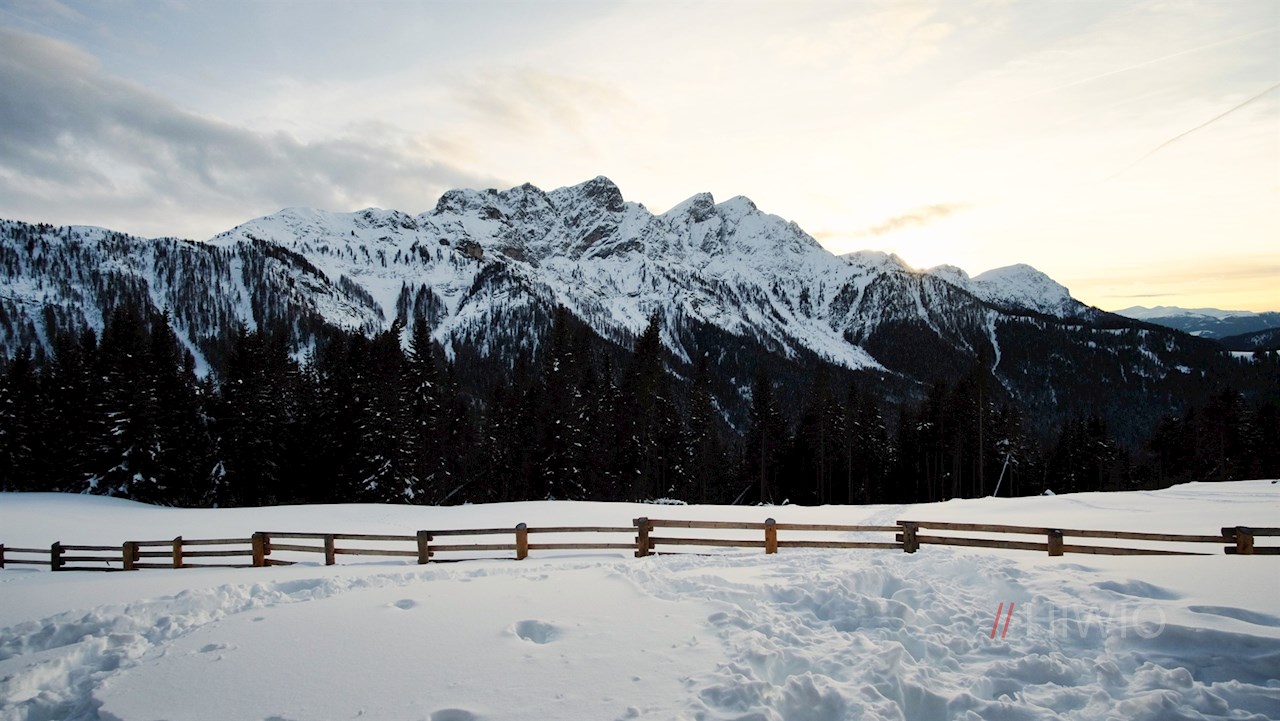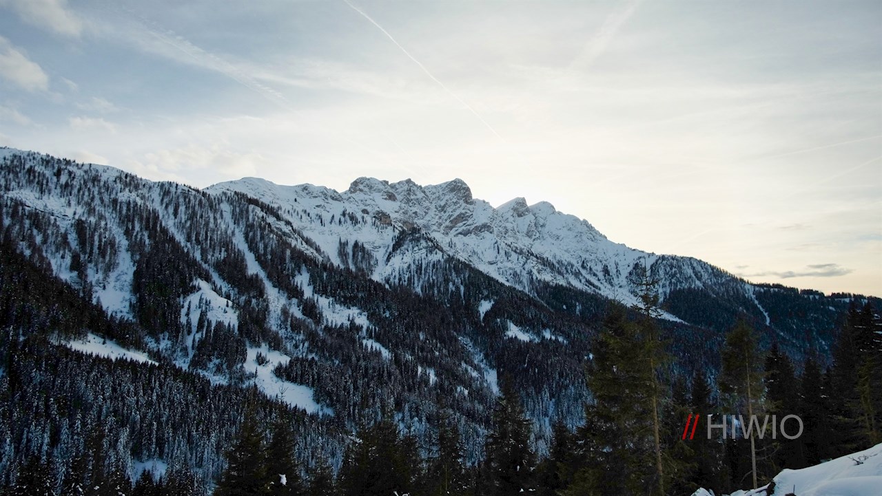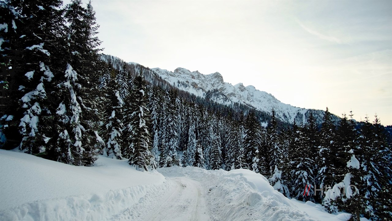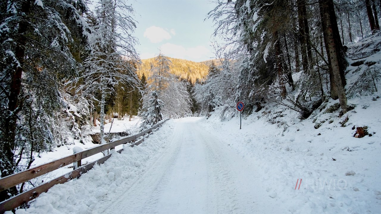 Stets der Beschilderung in Richtung Brunstalm folgend, wandert man im steten Anstieg durch den dichten, schneeverhangenen Nadelwald. Unterwegs erschließen sich immer wieder schöne Ausblicke auf den Pragser Hochalpenkopf, die Dreifingerspitze, den Piz da Peres und den Kronplatz.