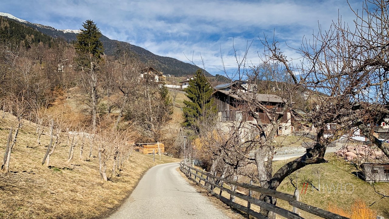 Er folgt kurz der Straße, von der er wenig später rechts abzweigt. Mit Blick auf die Plose, den Peitlerkofel und die Aferer Geisler zieht er sich teils eben, teils im sanften Anstieg durch Wiesen und lichte Haine.