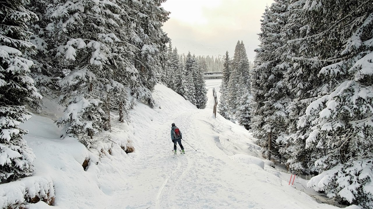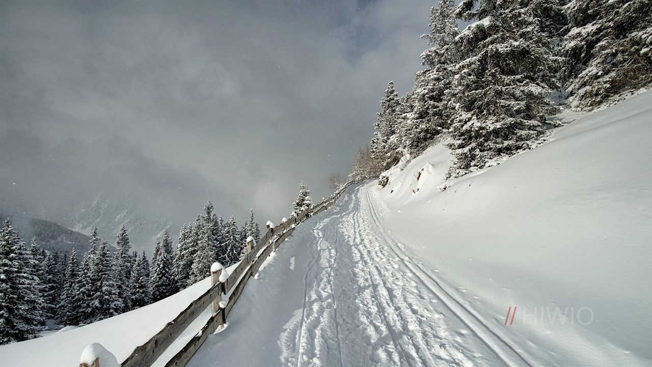 Er führt im sanften Auf und Ab durch die malerische Winterlandschaft unterhalb des Jaufenkammes und öffnet dabei immer wieder schöne Ausblicke.
