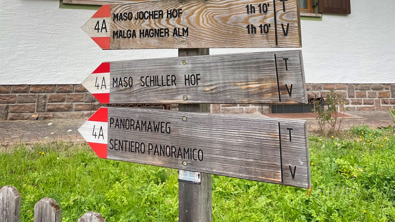 Während sich der Weg Nr. 4A nun zur idyllischen Hagneralm fortsetzt, zweigt der Panoramaweg links ab und geht dabei in den Weg Nr. 15 über. Dieser zieht sich teils eben, teils im sanften Auf und Ab durch aussichtsreiche Wiesen und lichte Waldstücke und führt dabei an einzelnen Häusern und Höfen vorbei, zu denen auch ein Ensemble dreier Erbhöfe aus dem 12. und 13. Jahrhundert zählt.
