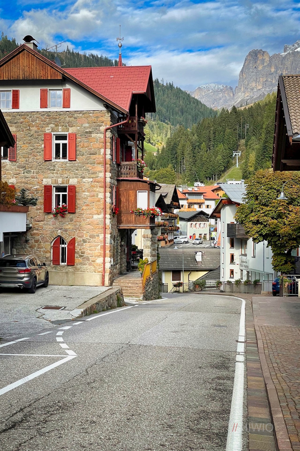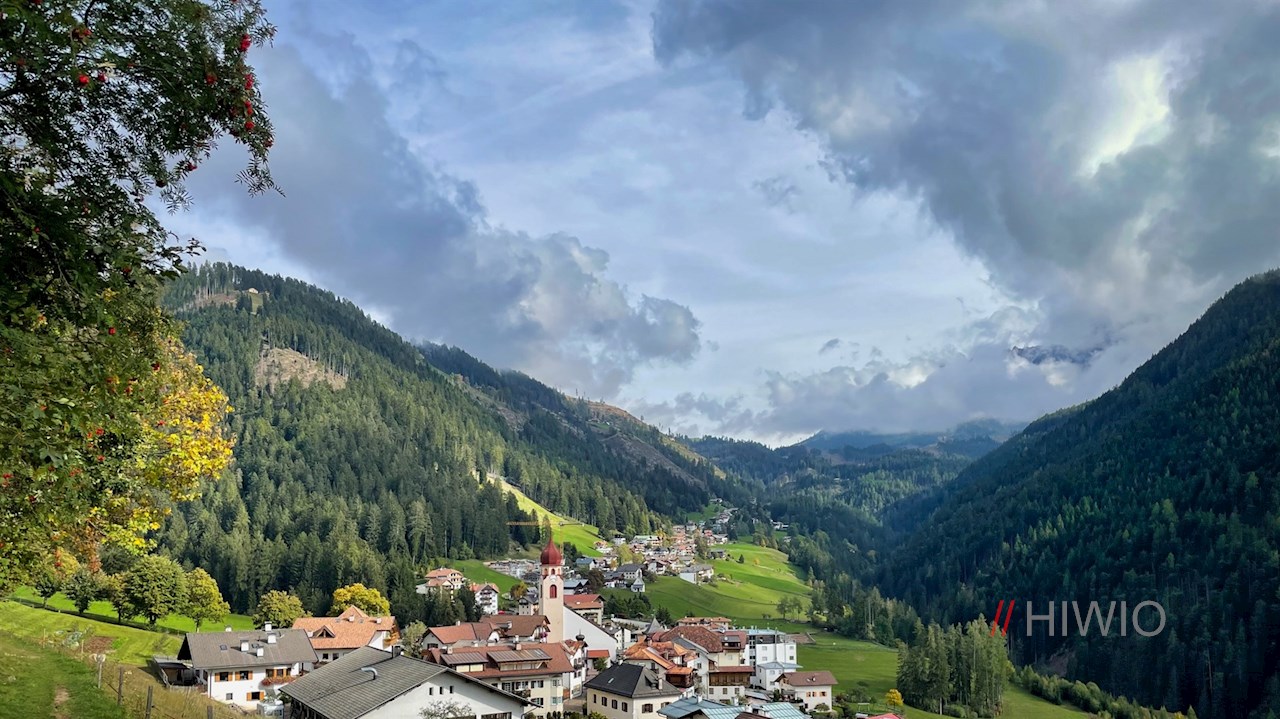 Der Panoramaweg selbst endet bei der Pension Erna, von der die Wanderung entlang der Dorfstraße zum Ausgangspunkt bei der Talstation zurückführt.