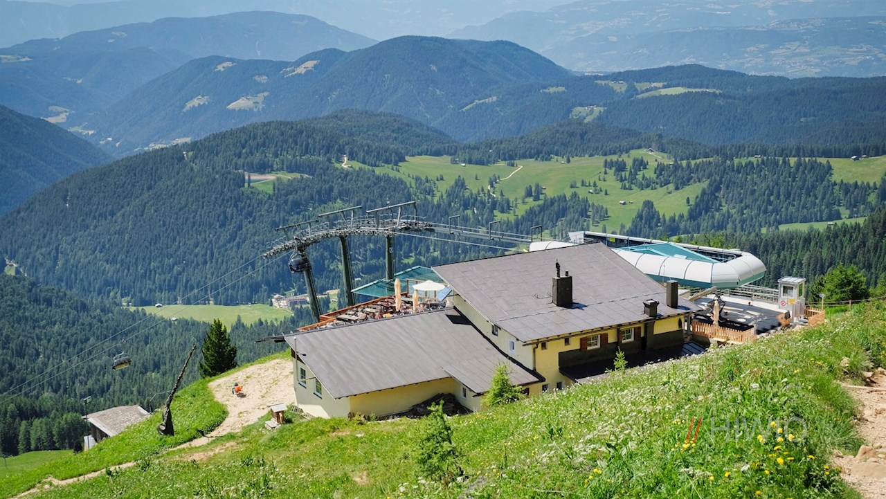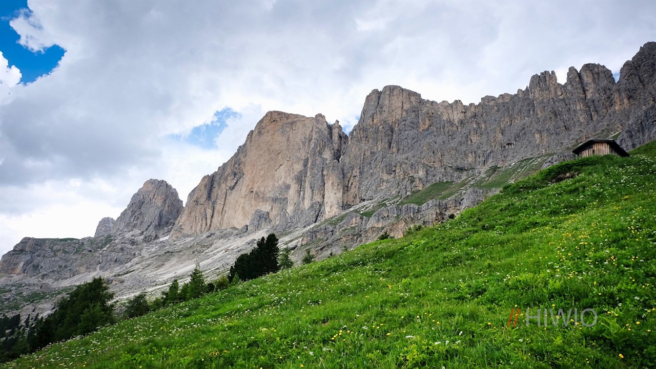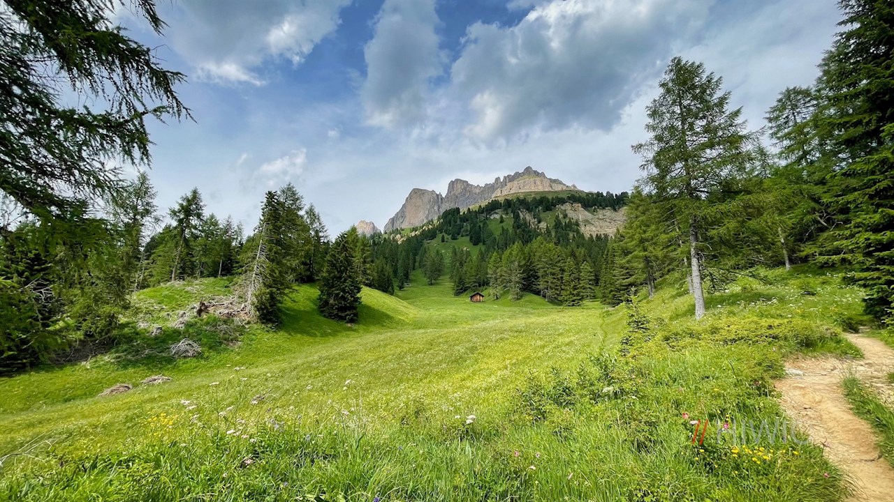 Er führt im angenehmen Anstieg durch lichte Waldstücke und aussichtsreiche Bergwiesen, in denen im Frühsommer eine üppige Vielfalt zarter Blumen gedeiht. Zu ihnen zählen beispielsweise die Kugelige Teufelskralle, die Dotterblume, die Türkenbundlilie oder die Akelei. Noch bezaubernder aber mag der Blick auf die immer näher rückenden Felswände des Rosengarten und des gegenüberliegenden Latemar sein.