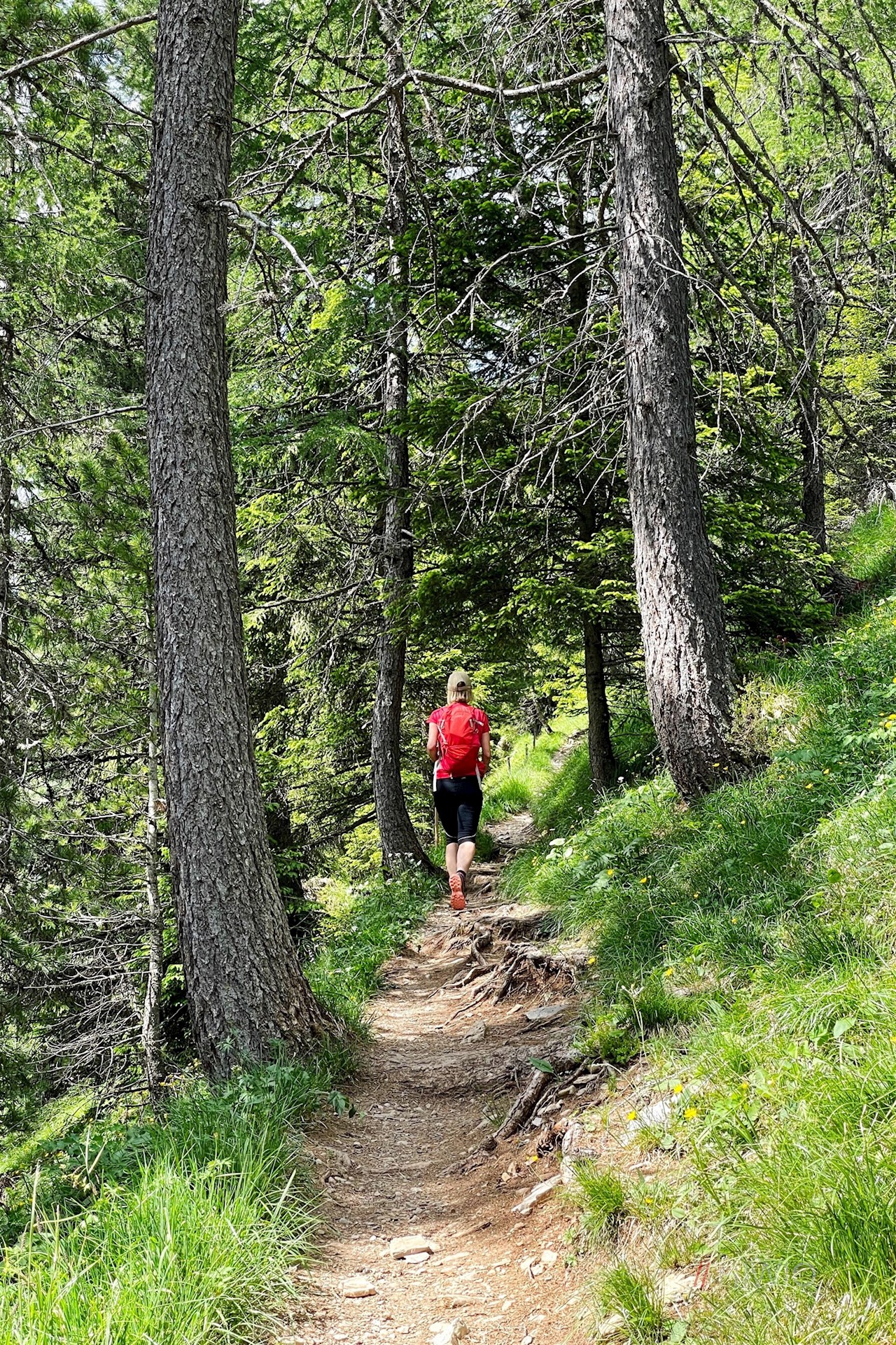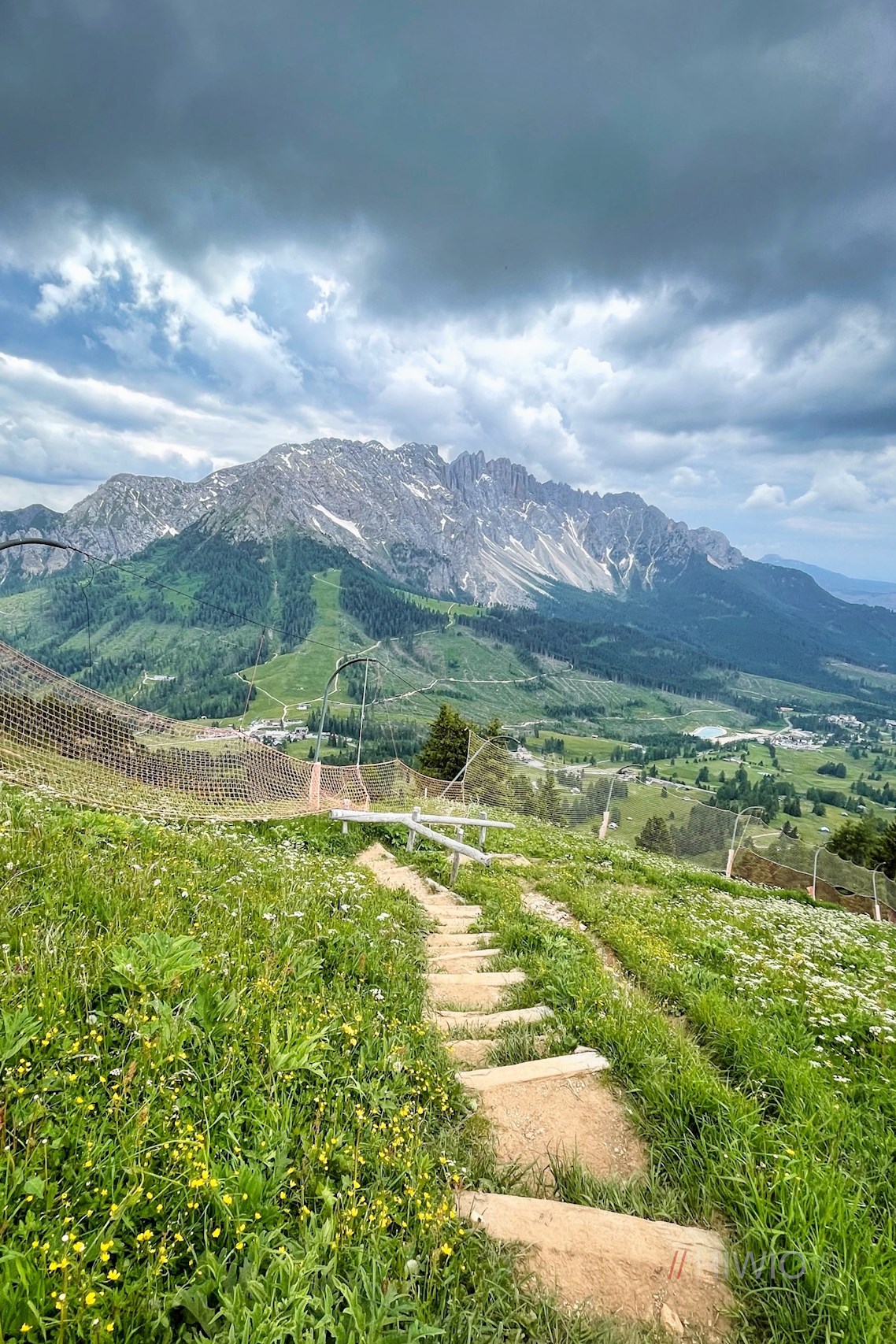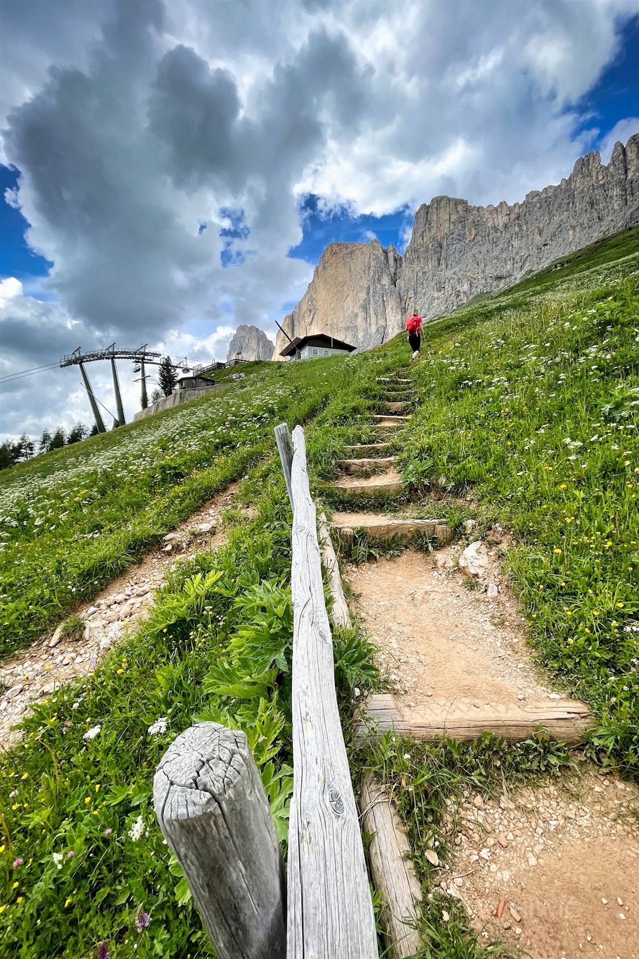 Er führt im angenehmen Anstieg durch lichte Waldstücke und aussichtsreiche Bergwiesen, in denen im Frühsommer eine üppige Vielfalt zarter Blumen gedeiht. Zu ihnen zählen beispielsweise die Kugelige Teufelskralle, die Dotterblume, die Türkenbundlilie oder die Akelei. Noch bezaubernder aber mag der Blick auf die immer näher rückenden Felswände des Rosengarten und des gegenüberliegenden Latemar sein.