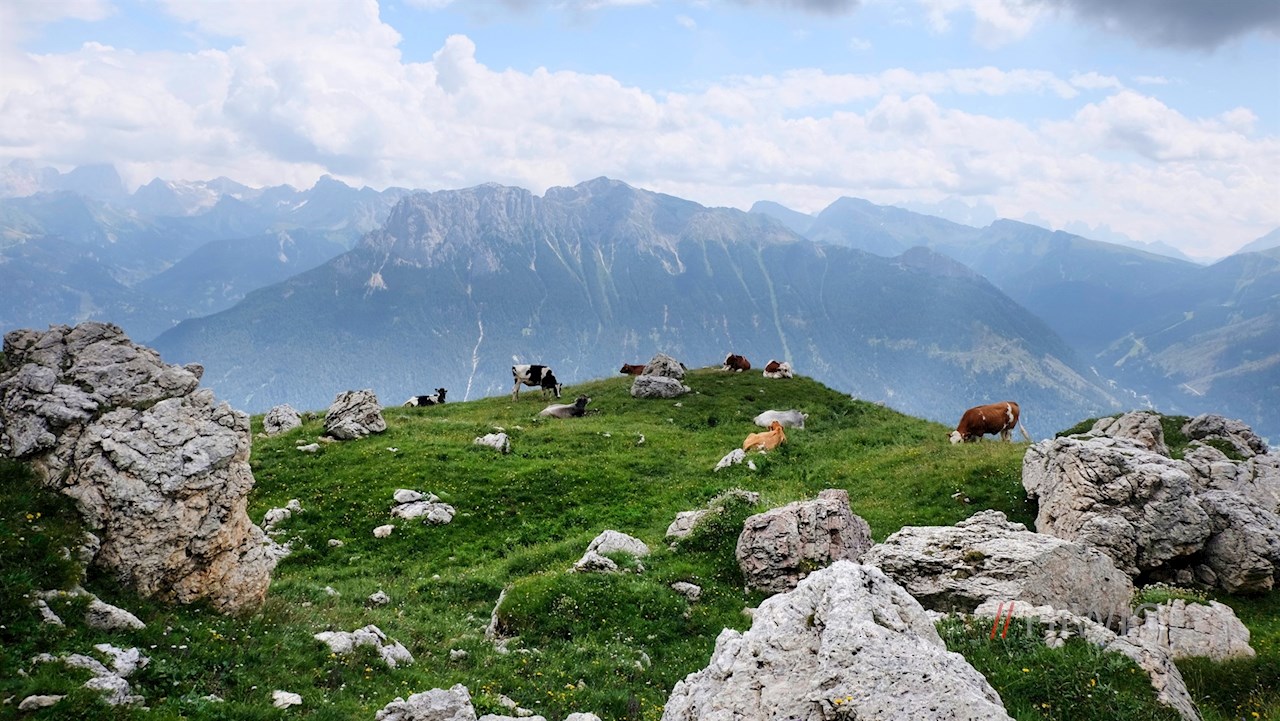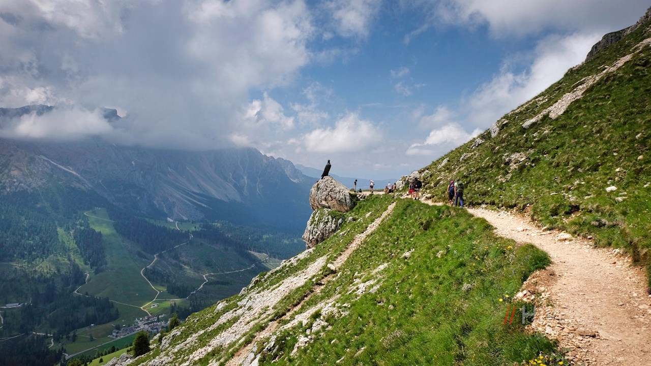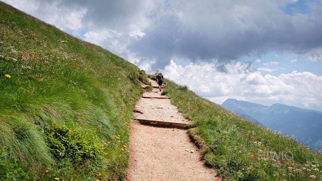 Von der Rotwandhütte steigt der Weg Nr. 548 durch aussichtsreiche Bergwiesen und lichte Haine zum Karerpass ab, von dem man in wenigen Minuten entlang der Straße zur Talstation des Paolinaliftes zurückkehrt.