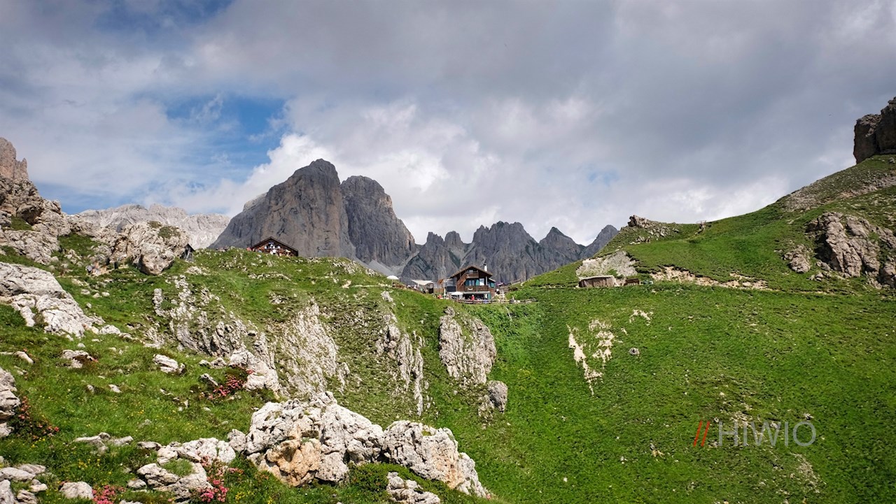 Kurze Wanderung im Rosengarten von der Paolina Hütte zum Christomannos Denkmal und zur Rotwandhütte