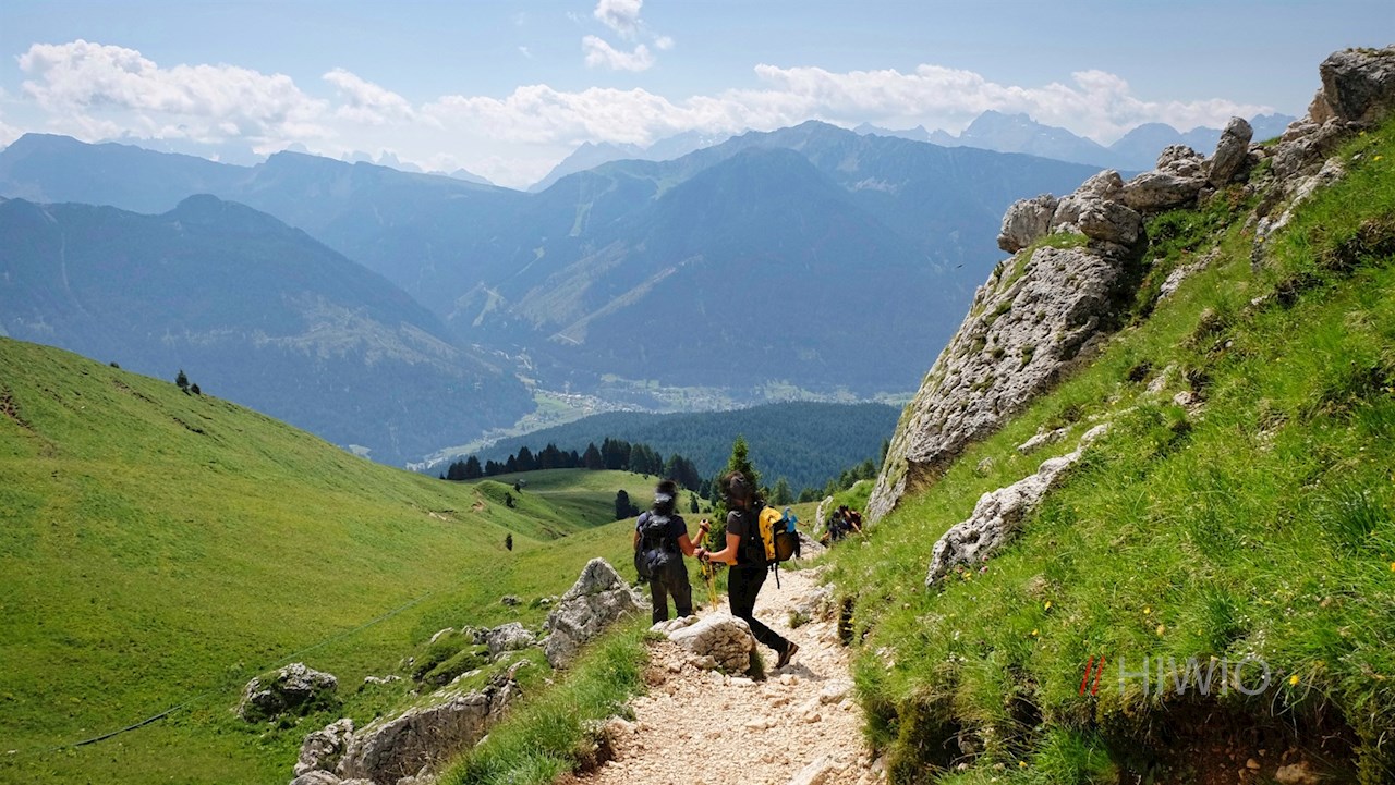 Der Panoramasessellift bringt die Wanderer in wenigen Minuten zur 500 Meter höher gelegenen Paolina Hütte hoch, bei welcher der Wanderweg Nr. 539 zur Rotwandhütte (Roda di Vael) abzweigt.