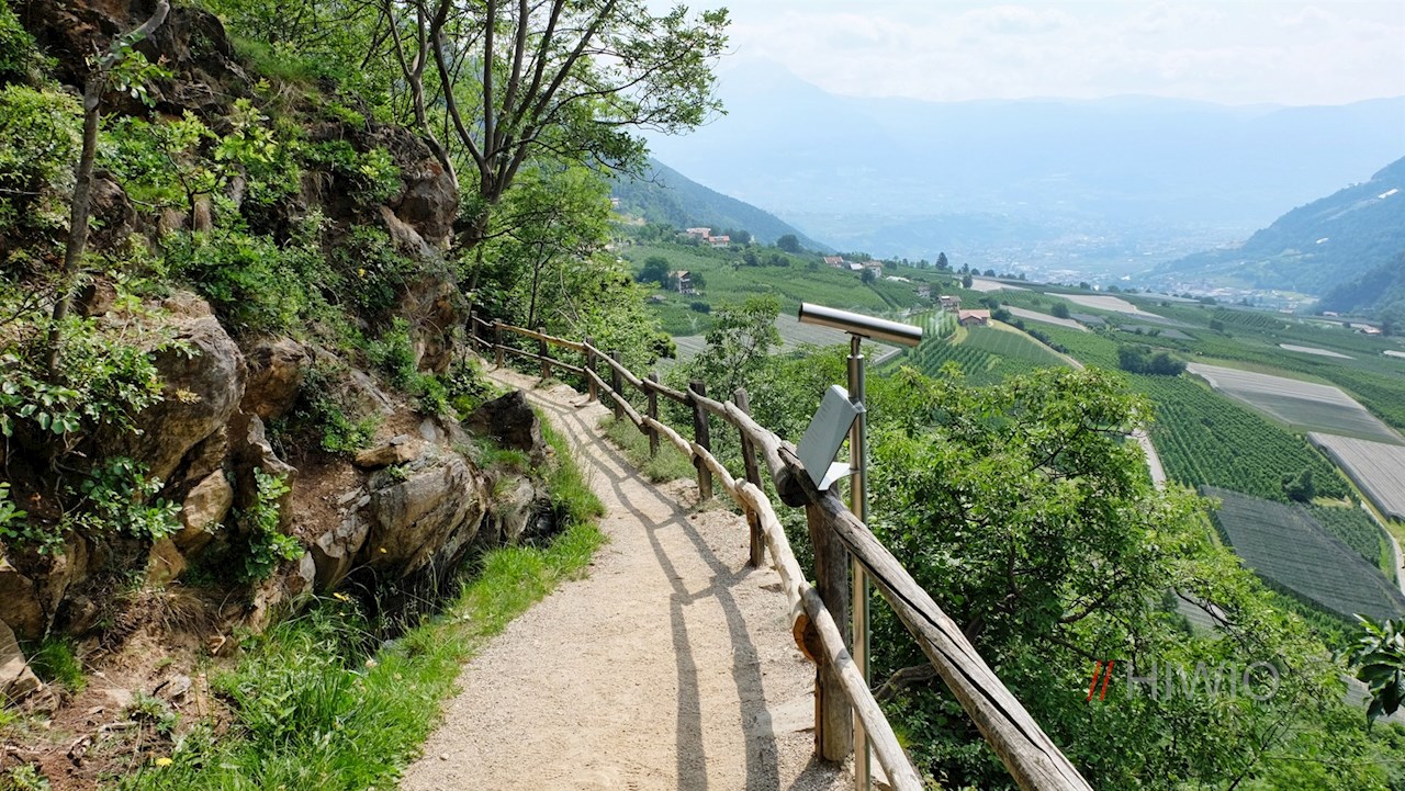 Wenngleich der Partschinser Waalweg von dichtem Laubwald und Macchia umrahmt wird, eröffnen sich immer wieder traumverlorene Ausblicke auf Partschins, den Vinschgau im Westen und die Sarntaler Alpen im Osten.