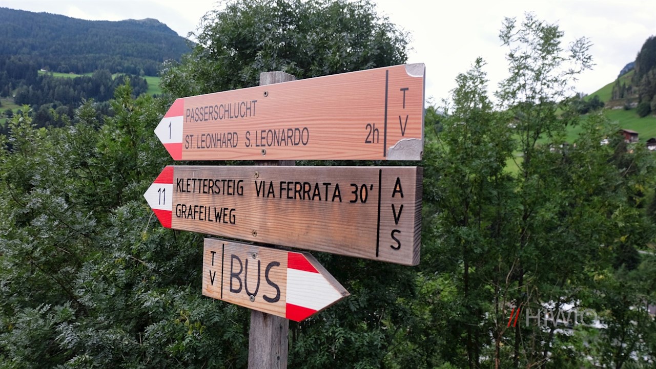 Die Wanderung durch die Passerschlucht beginnt in der Sportzone des Passeirer Dorfes St. Leonhard in Passeier, um die sich einige Parkmöglichkeiten finden.