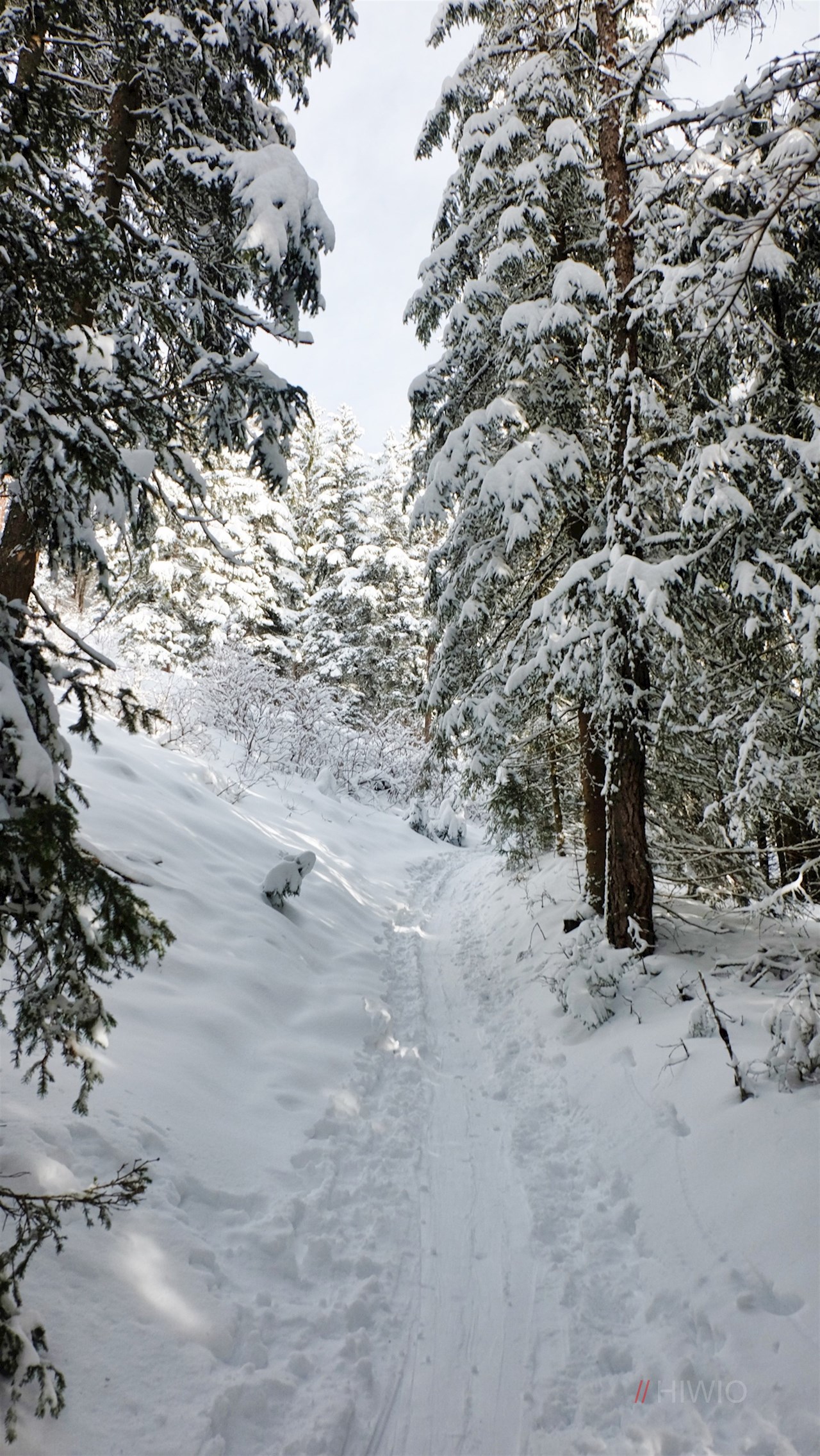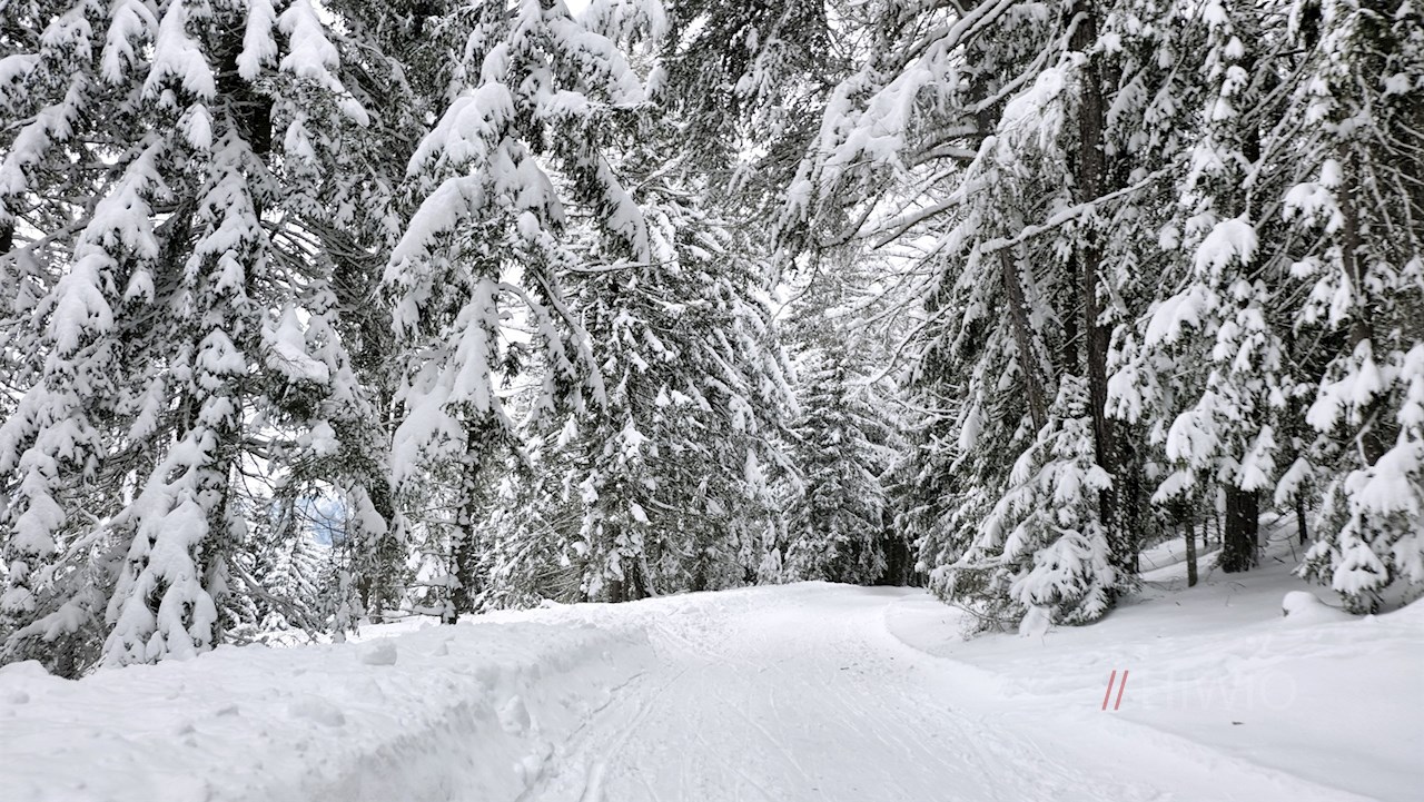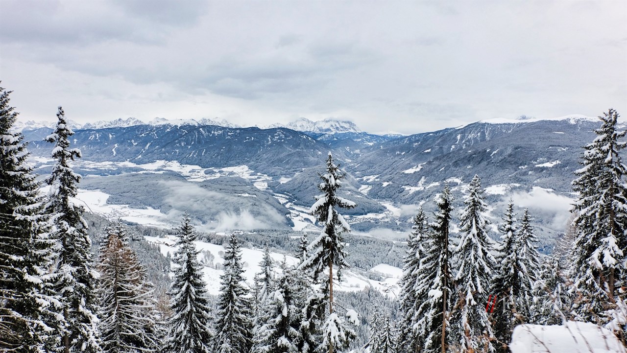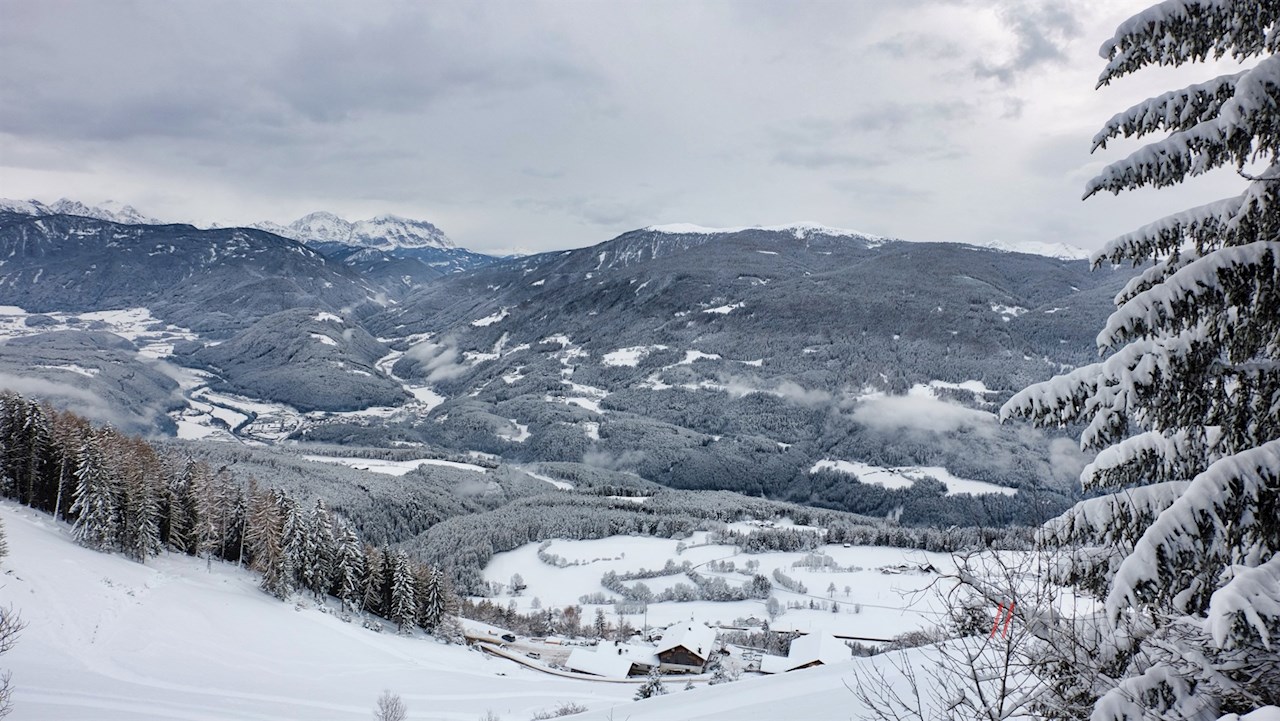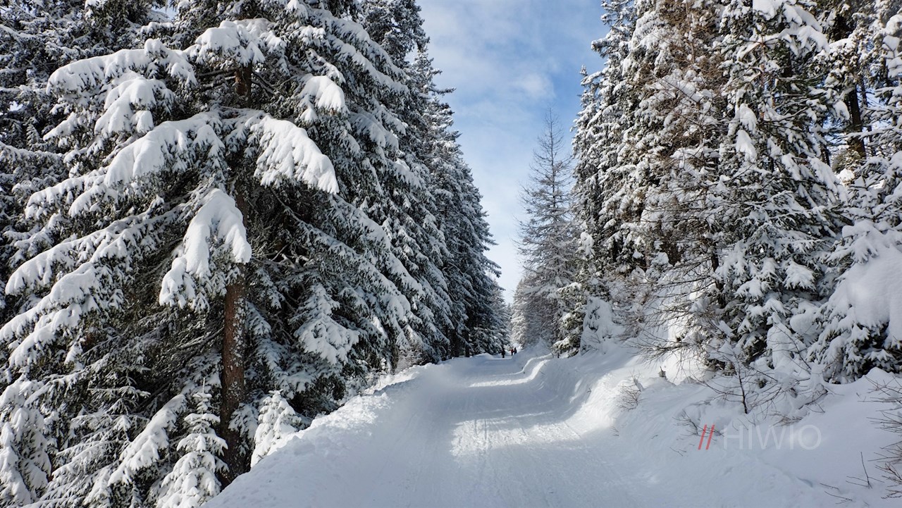 Am Parkplatz schlägt man den breiten Forstweg Nr. 5 bzw. 5A ein. Er führt im sanften Anstieg durch einen märchenhaft verschneiten Wald, der ab und an Ausblicke auf den Pusterer Talkessel und die „bleichen“ Dolomiten freigibt.