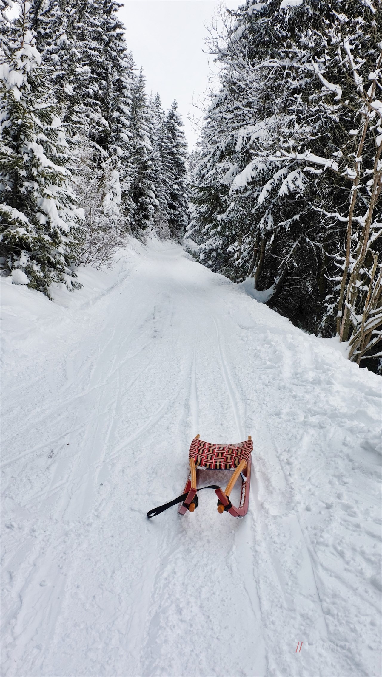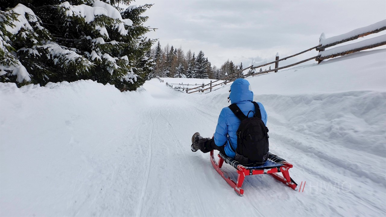 Der Rückweg von der Pertinger Alm erfolgt auf dem Hinweg. Er wird im Winter gerne mit der Rodel zurückgelegt.