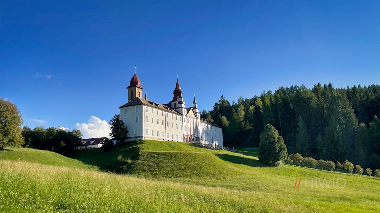 Die Wanderung zur Petersberger Leger Alm beginnt auf dem gebührenpflichtigen Parkplatz des Wallfahrtsortes Maria Weißenstein bei Deutschnofen.
