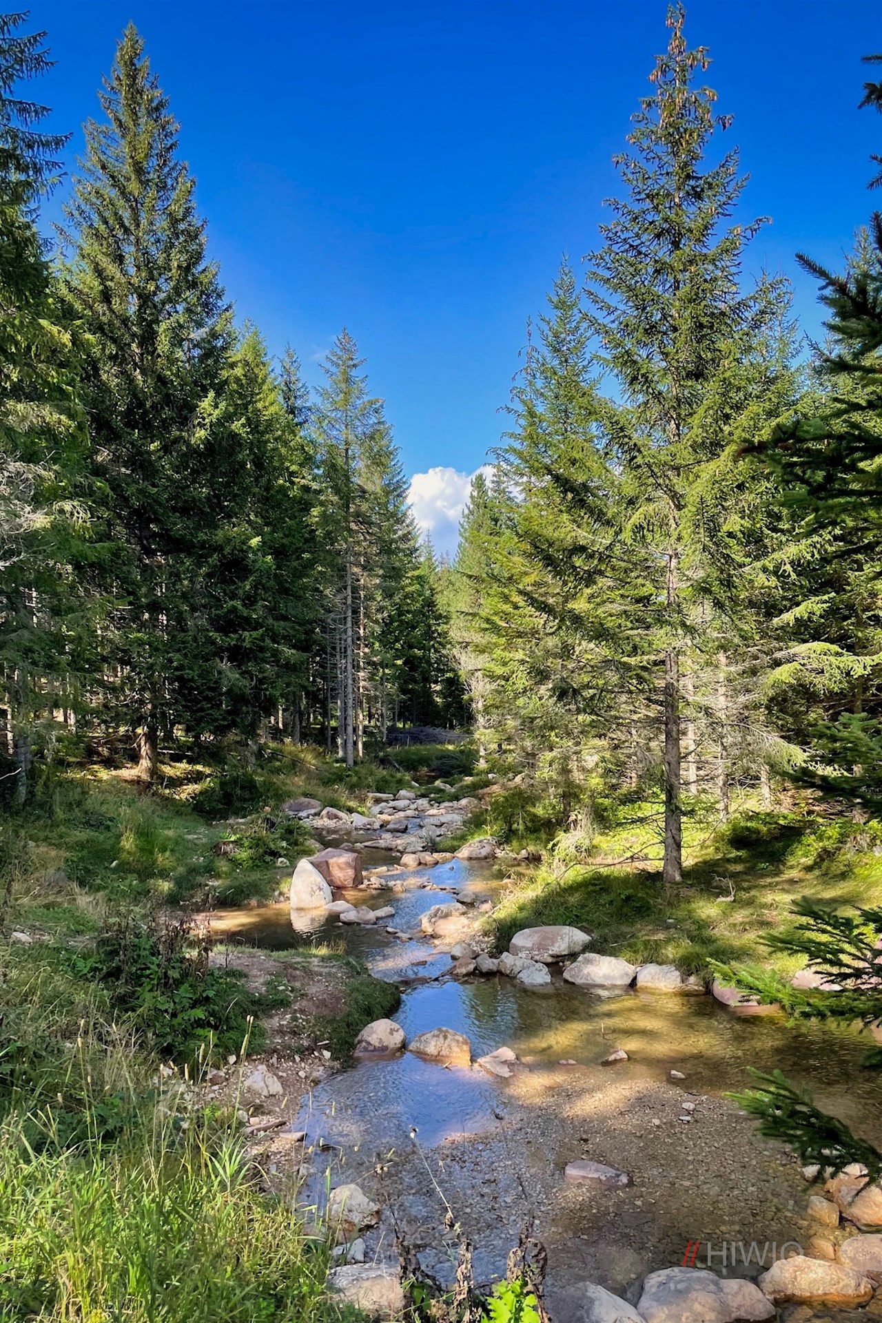 Zwischen dem Haus der Kultur und dem Kongresshaus zweigt der breite Wanderweg Nr. 2 in Richtung Petersberger Leger ab. Er taucht sogleich in einen schattenverheißenden Wald ein, durch den er sich teils eben, teils im sanften Auf und Ab seinen Weg bahnt.