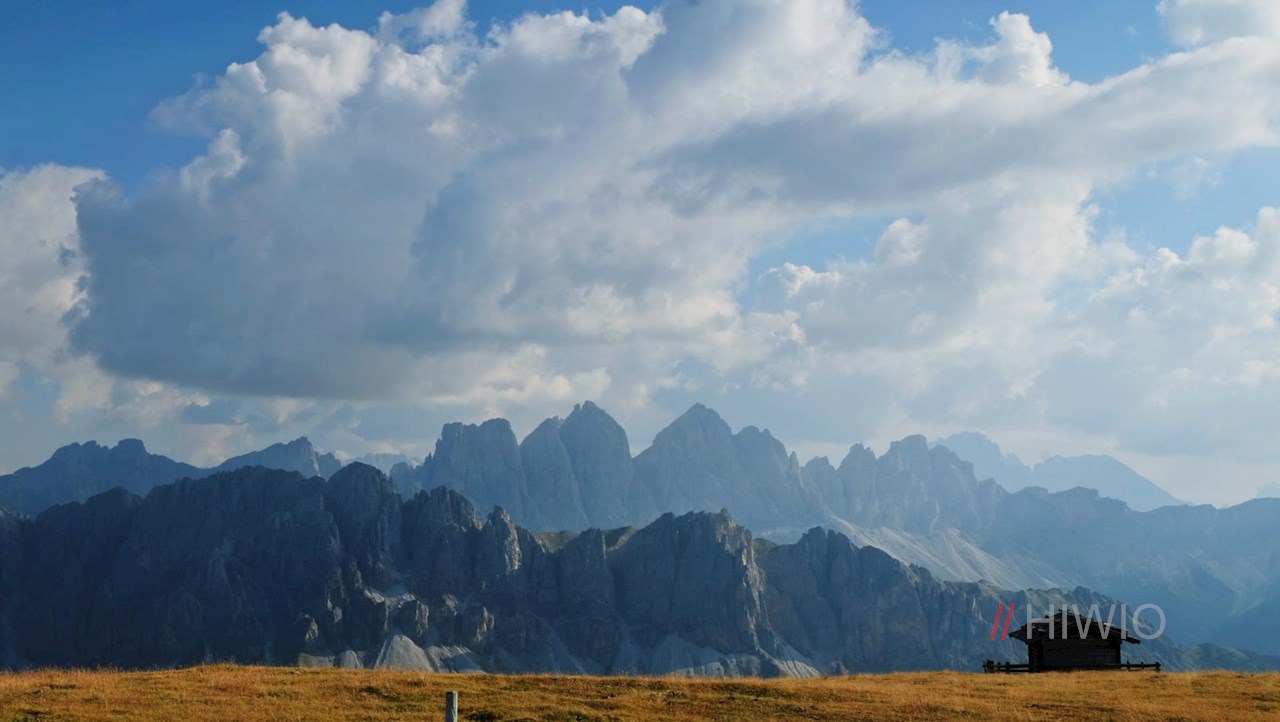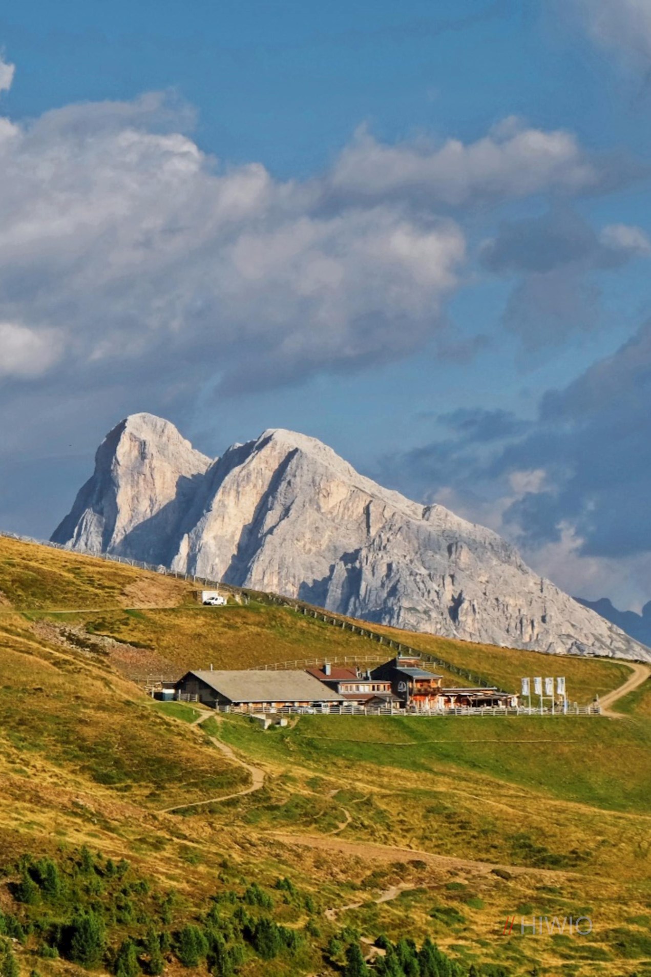 Mit Blick auf die gegenüberliegenden Dolomiten lädt dieses idyllisch gelegene Schutzhaus zur kleinen Zwischenrast auf 2.447 m Höhe.