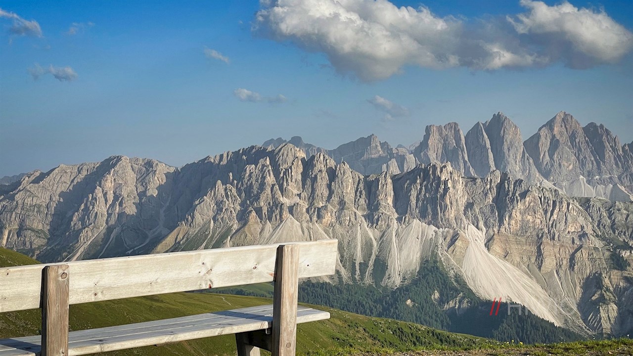 Dieser schlängelt sich im angenehmen Anstieg über freie, von Zwergsträuchern und zarten Bergblumen bewachsene Weidehänge, auf denen sich malerische Ausblicke auf die anmutigen Felszacken der Aferer und Villnösser Geisler entfalten.