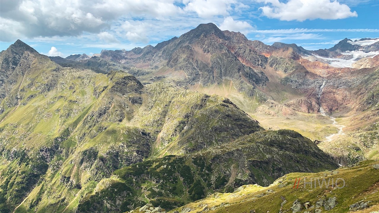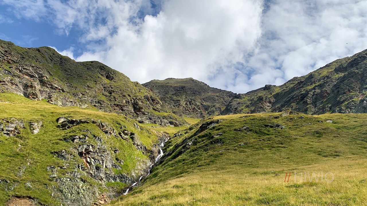 Er führt im steten Anstieg über bergumrahmte Almwiesenhänge, die schöne Ausblicke auf den tiefer liegenden, von milchigen Gletscher- und glasklaren Quellwasserläufen durchzogenen Agelsboden, die Teplitzer Hütte, das darüber thronende Becherhaus und die umliegende Bergwelt öffnen (alternativ dazu kann man auch den breiten, sanfter ansteigenden Almweg einschlagen).