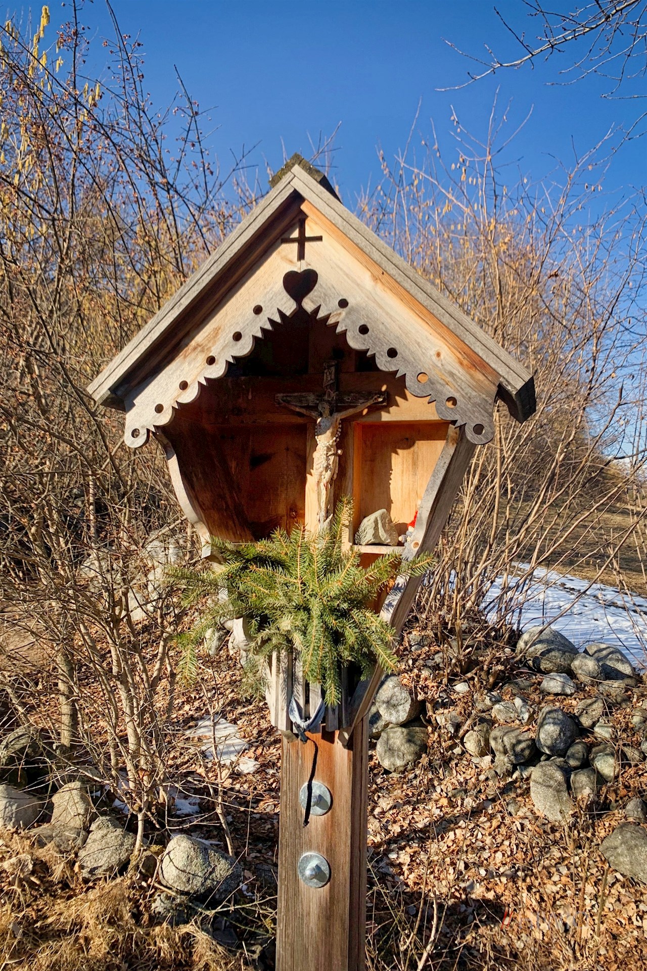 Zuvor aber lohnt noch ein Abstecher zum Nikolauskirchlein. Das pittoreske, direkt am Wegesrand gelegene Gotteshaus wurde in der ersten Hälfte des 14. Jahrhunderts erstmals erwähnt und sollte im Laufe der Jahrhunderte einige Zubauten erfahren. Einer lokalen Überlieferung zufolge wurzelt seine Entstehung in einem Konkurrenzkampf zweier Adeliger: Während der eine dieses Gotteshaus errichten ließ, soll der andere das nahe St. Johannes Kirchlein in Tötschling in Auftrag gegeben haben, zu dem die Wanderung nun weiterführt.