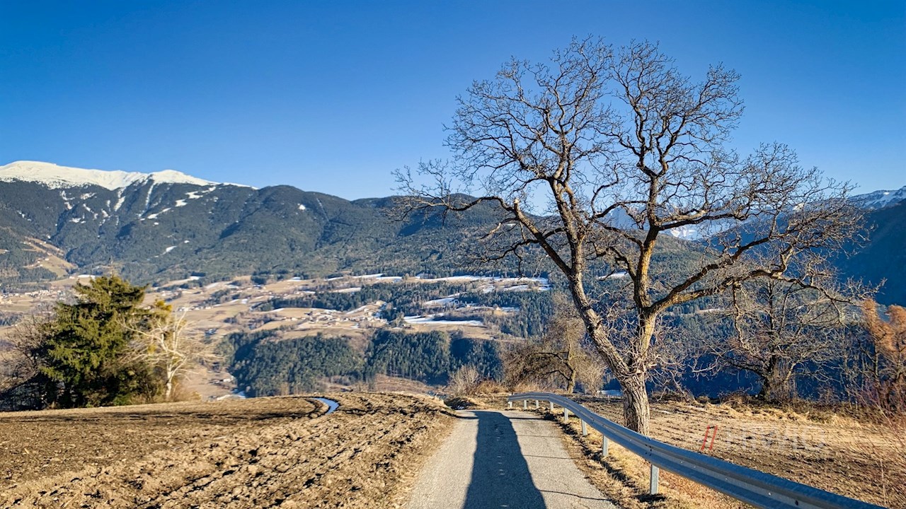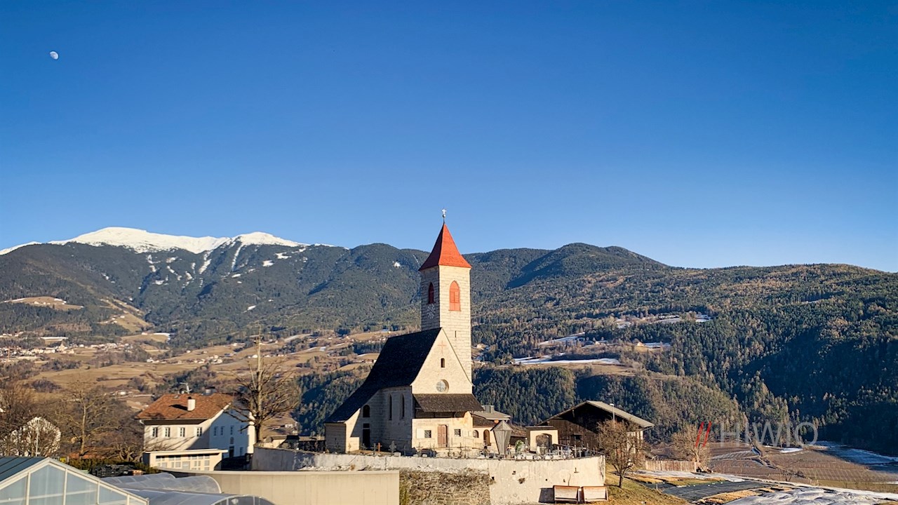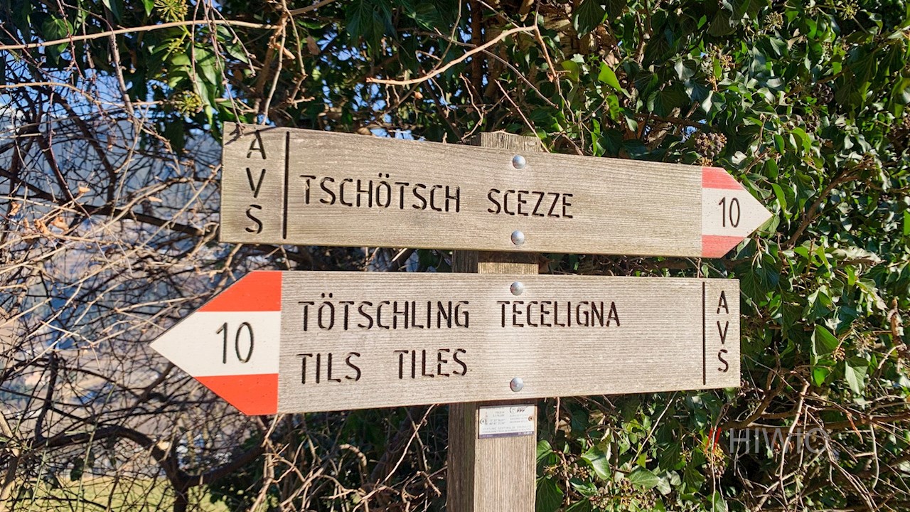 Neben dem freskengeschmückten Johanneskirchlein weist der Wegweiser Nr. 10 den Abstieg nach Tschötsch. Er führt teils auf Wanderwegen, teils entlang der Straße durch Wiesen, Felder und Wälder und öffnet dabei schöne Ausblicke.