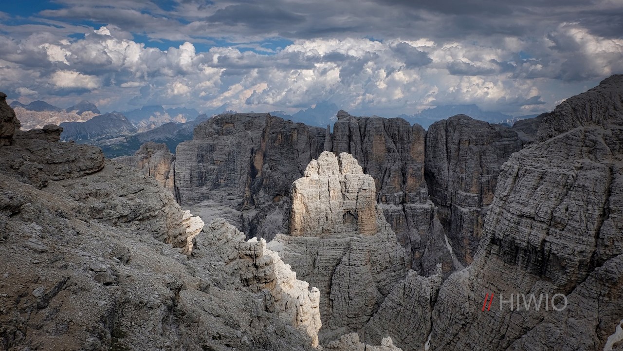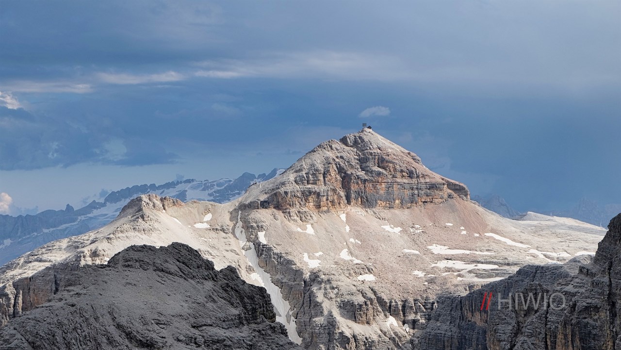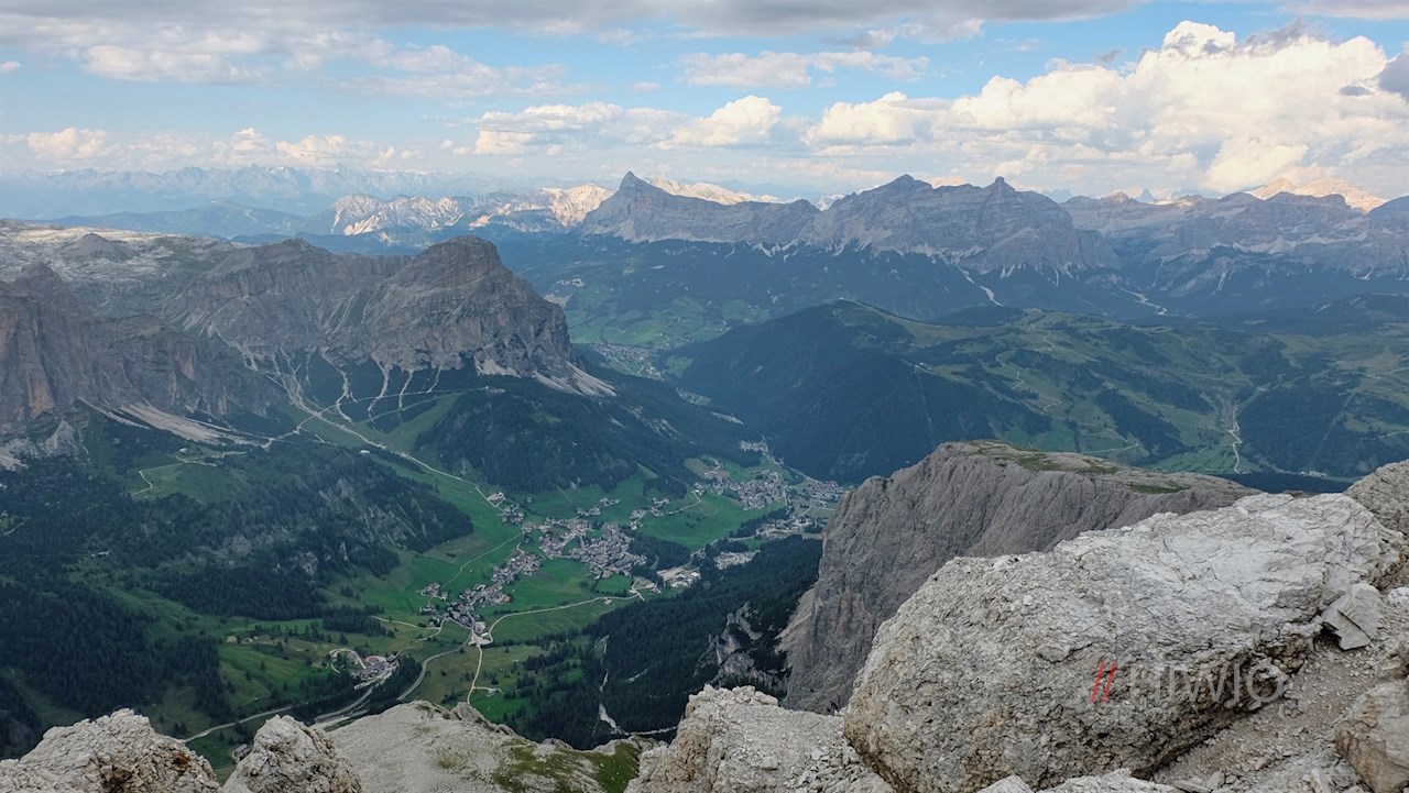 Oben angekommen, erschließt sich ein nahezu unendlicher Panoramablick auf die umliegenden Dolomiten. In erster Linie aber mag der pyramidenförmige Piz Boe ins Auge stechen.