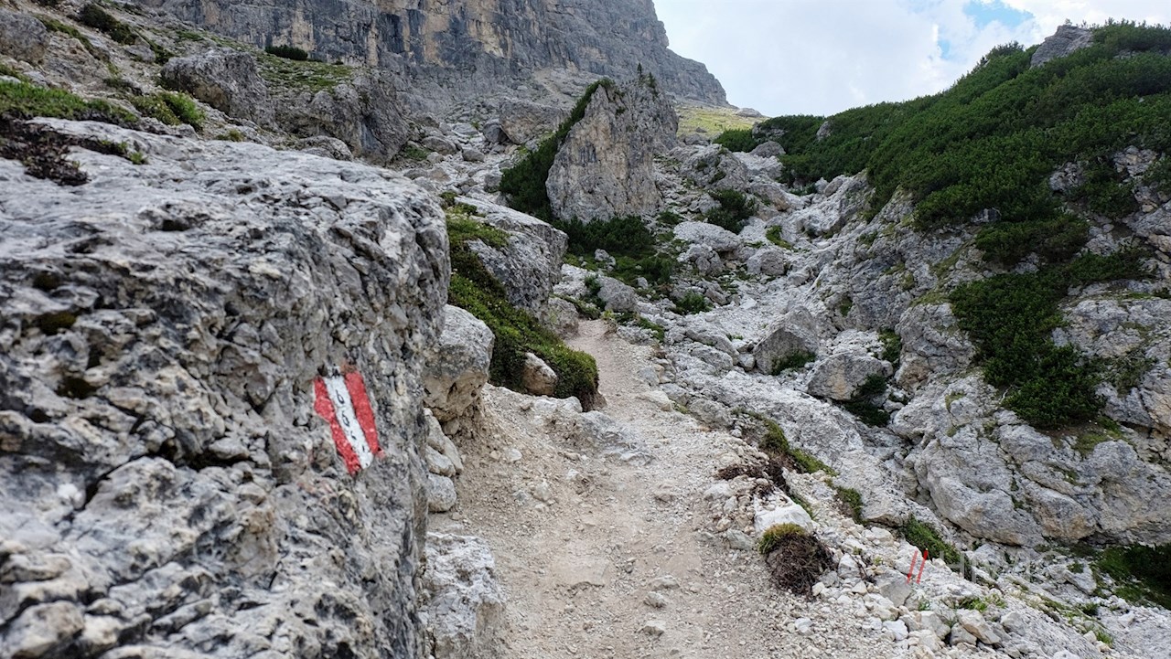 Am Parkplatz schlägt man den Wanderweg Nr. 666 in Richtung Pisciaduhütte (Ütia de Pisciadù) ein.