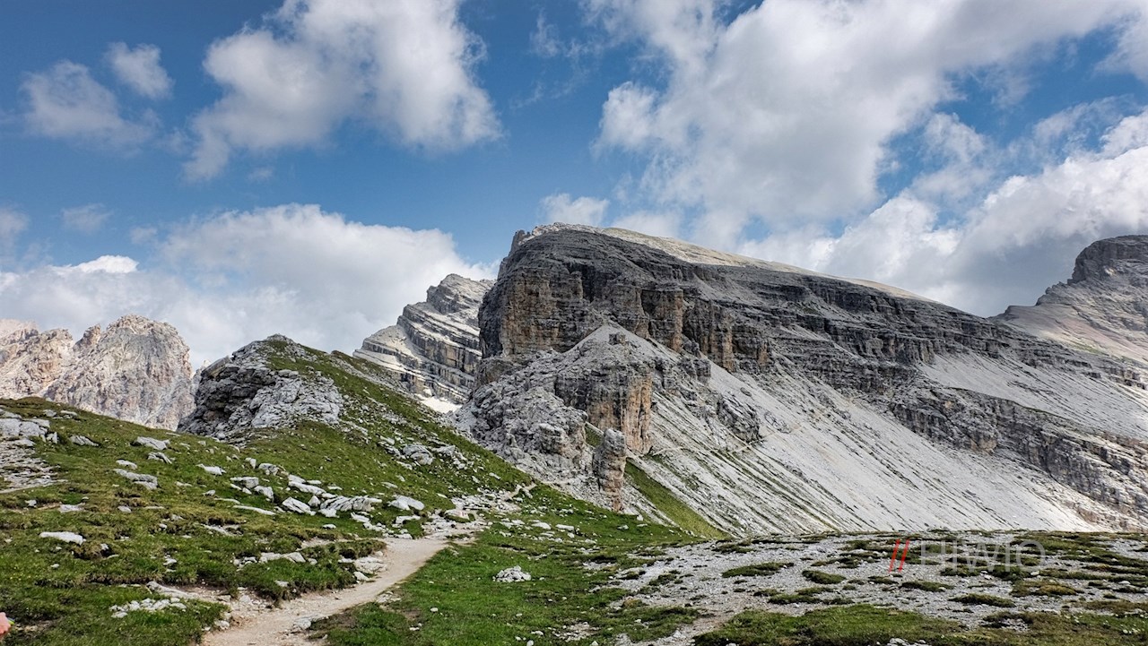 Dort folgt man dem von hohen Felswänden umrahmten Weg Nr. 2 in Richtung Sielesscharte. Er schlängelt sich zunächst nahezu eben durch das Sieles-Tal und steigt dann über recht steile Geröllhänge auf die Sieles-Scharte an.
