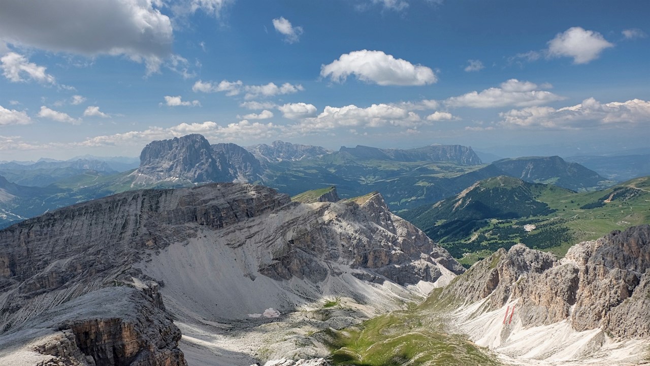 Der markante, von zahlreichen Felsbändern durchzogene Piz Duleda ist mit 2.909 m Höhe die zweithöchste Erhebung der Puezgruppe. Er zählt zu den aussichtsreichsten Gipfeln im UNESCO Weltnaturerbe der Dolomiten.