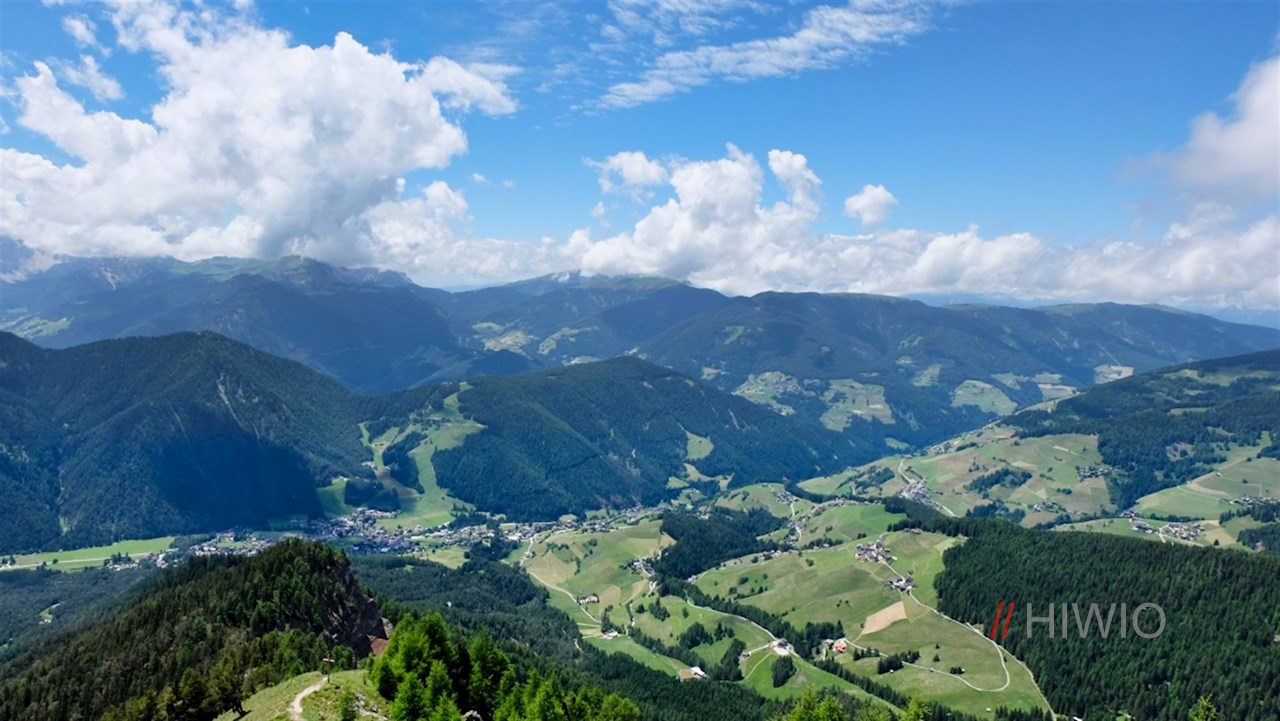 Auf 2.507 m Höhe erschließt sich hier ein imposanter Panoramablick auf die Gadertaler Dolomiten und den vergletscherten Alpenhauptkamm.