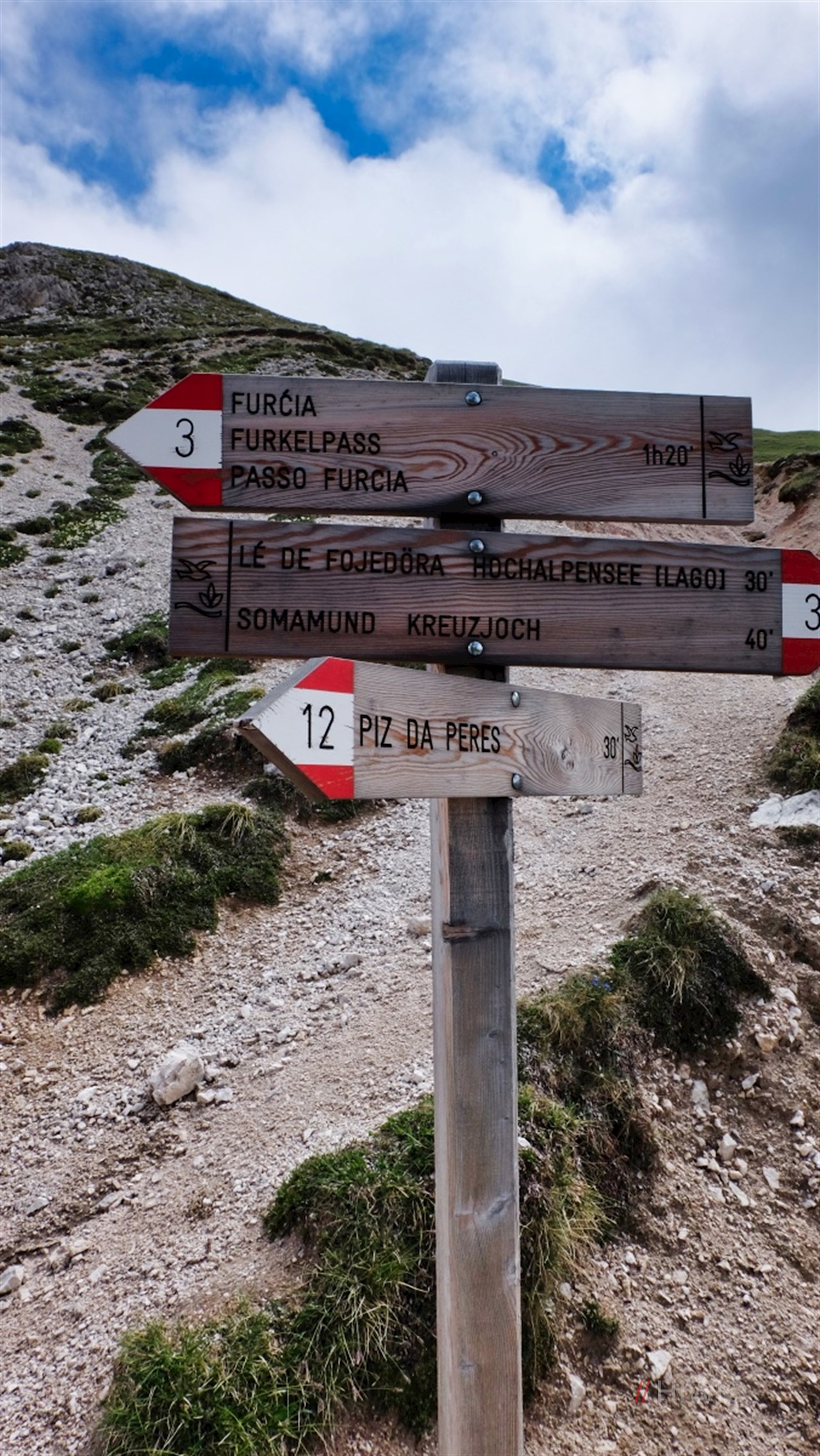 Die Wanderung auf den Piz da Peres beginnt auf einem der Parkplätze des Furkelpasses, der St. Vigil im Enneberg mit Olang und somit das Gadertal mit dem Pustertal verbindet.