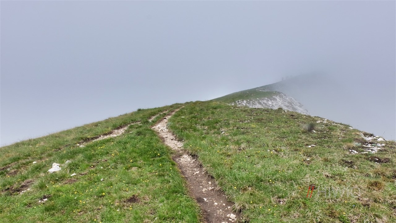Oben angekommen, zweigt rechts der schmale Pfad Nr. 12 ab, der über einen gleichmäßig ansteigenden Grasrücken zum Gipfelkreuz des frei aufragenden Piz da Peres führt.