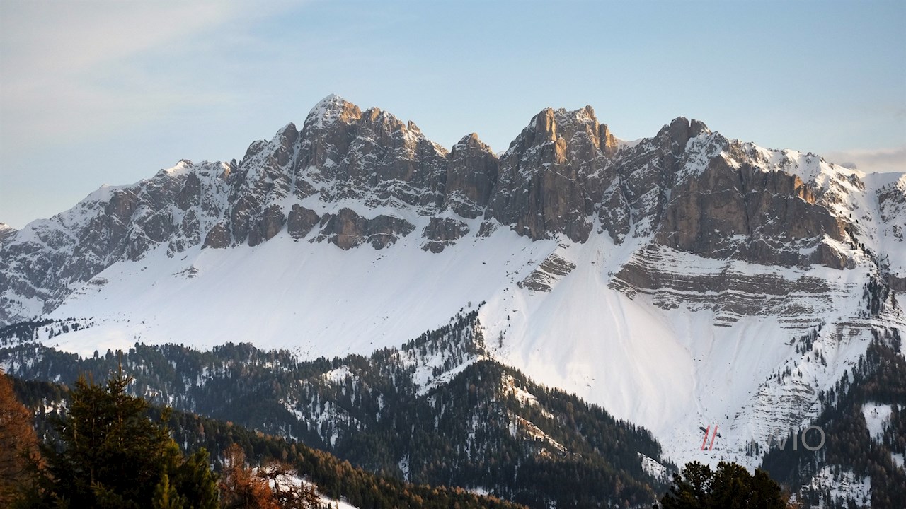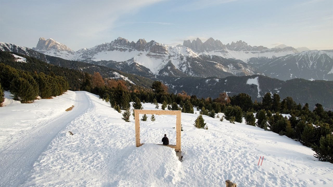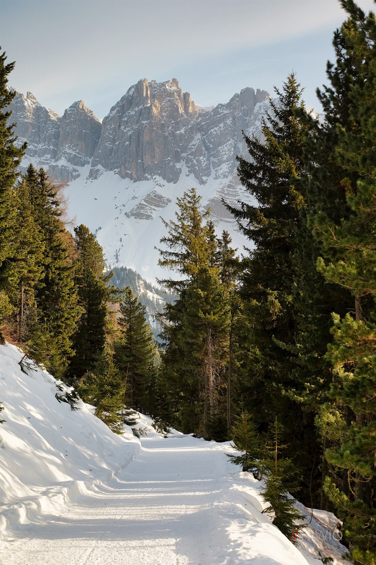Schließlich lichtet sich der Wald und gibt den Blick auf die schneebedeckten Dolomiten frei. Auf der nahen Aussichtsplattform ziehen insbesondere der majestätische Peitlerkofel und die anmutigen Zacken der Aferer und Villnösser Geisler die Wanderer in ihren Bann.
