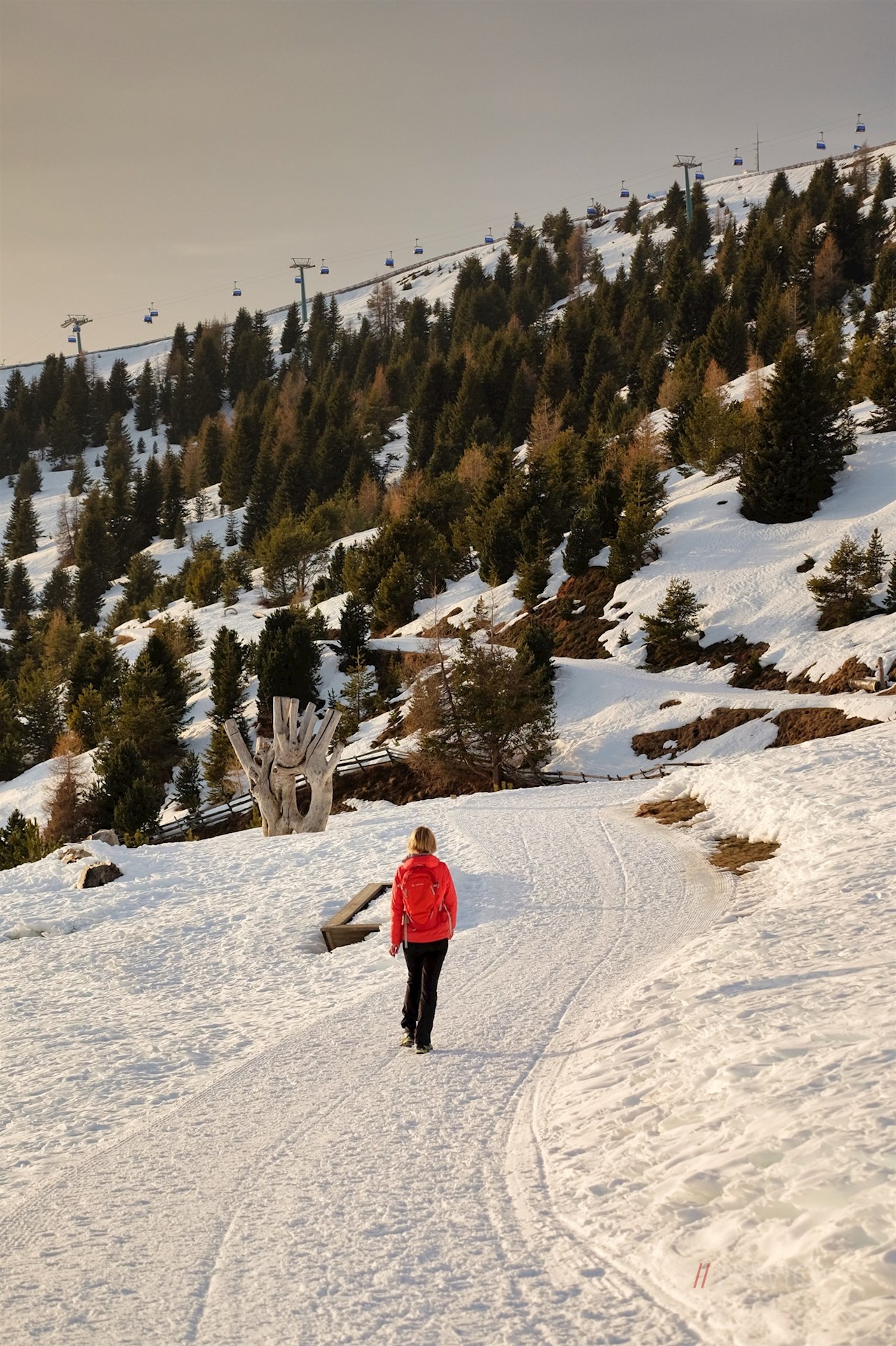 Die Plose bei Brixen verspricht auch im Winter ein ungetrübtes Wandererlebnis. Wenn sich eine weiße Schneedecke über ihre sanften Hänge gelegt hat, laden gebahnte Winterwanderwege zum Wandern und Genießen ein. Einer davon führt von der Skihütte in Palmschoß nach Kreuztal.