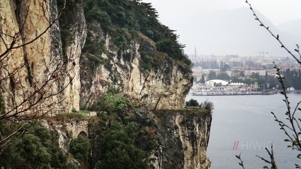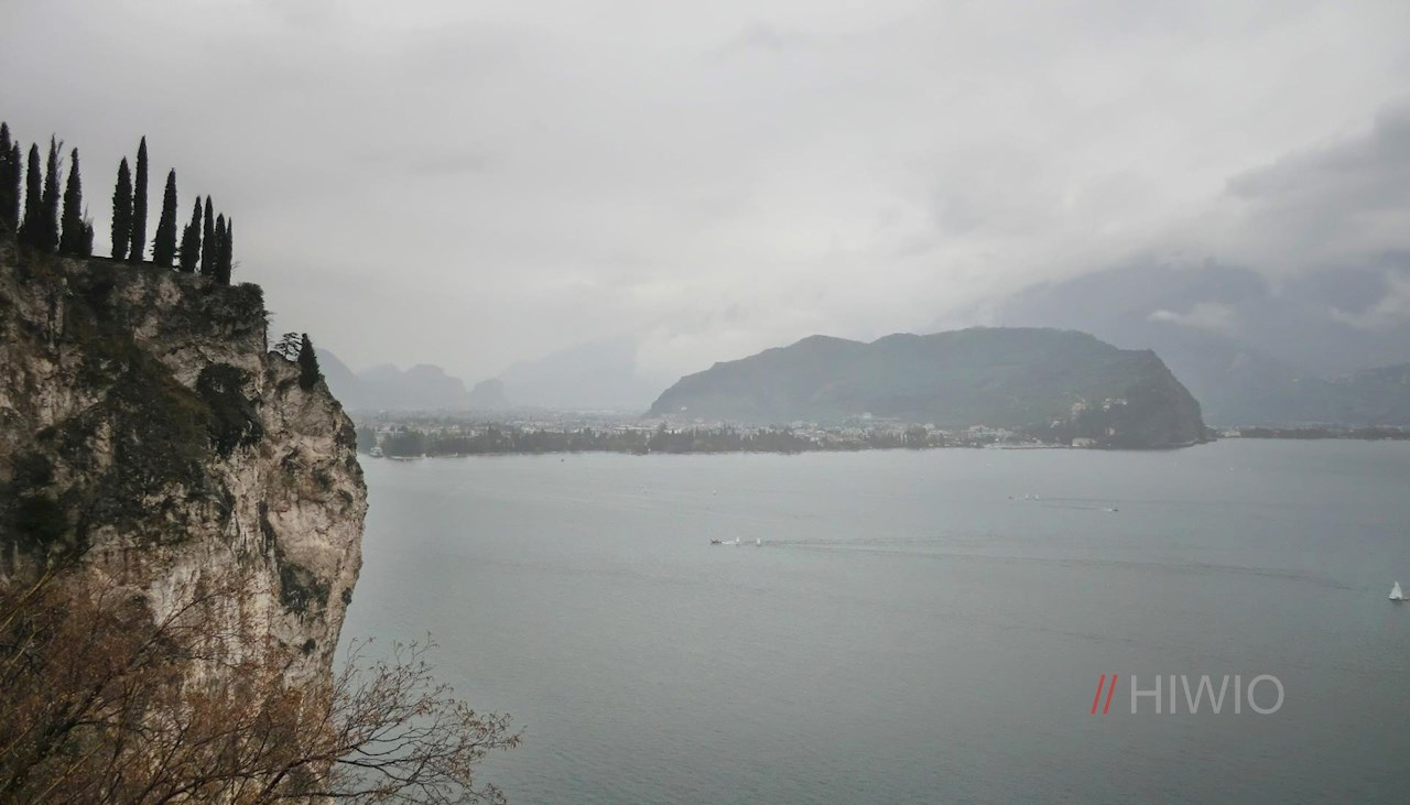 Die Panoramawanderung auf der Ponale Straße nimmt am Hafenbecken Rivas, der nördlichsten Stadt am Gardasee, ihren Anfang.