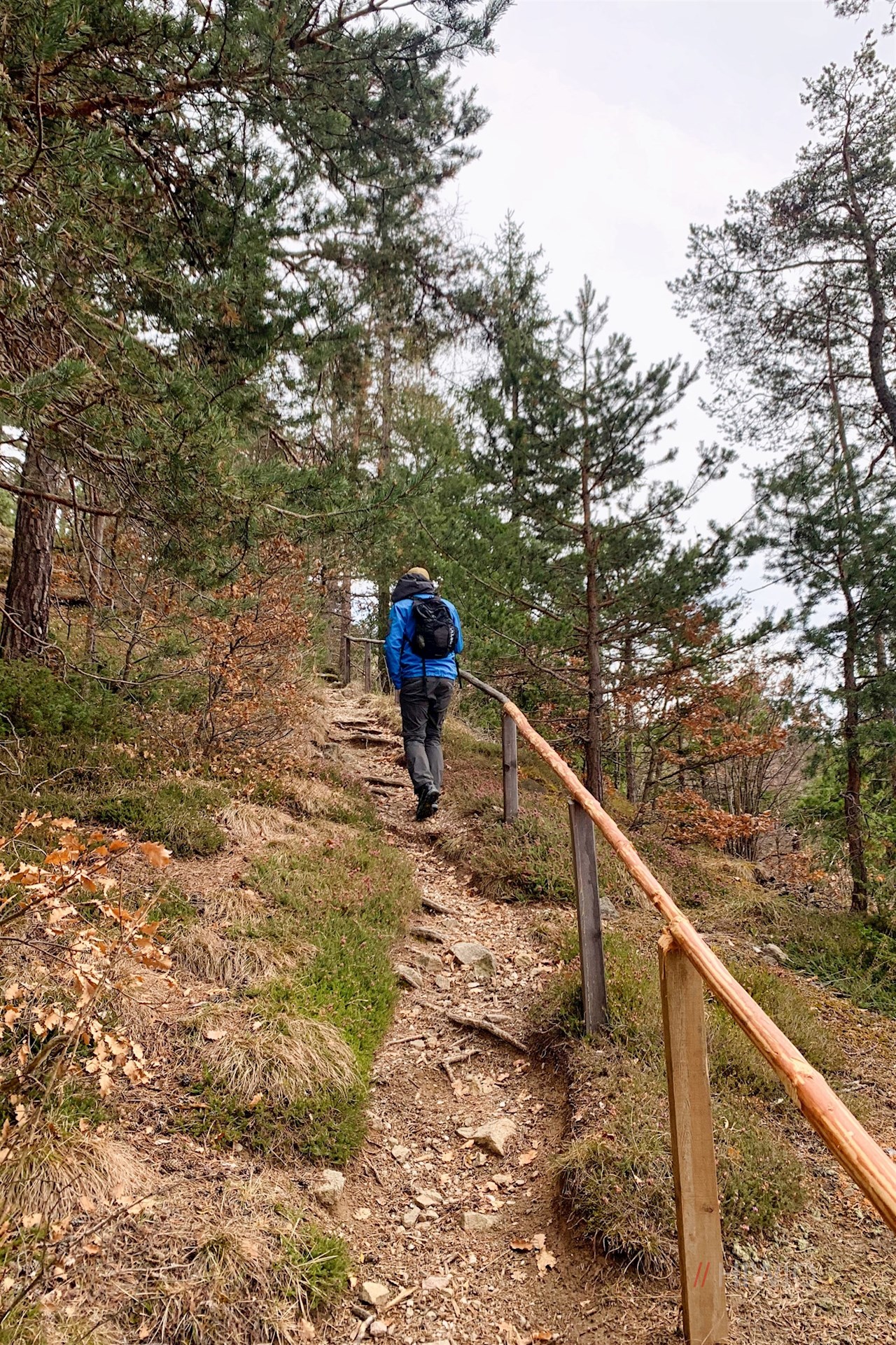 Hier geht die Wanderung in den Weg Nr. 5B über, der sich durch Wald und malerische Lärchenhaine zieht und schließlich in den Weg Nr. 5 mündet. Dieser fällt ins nunmehr nahe Prösels ab, in dem man die Wanderung bei einer Führung im geschichtsträchtigen Schloss Prösels oder im anliegenden Restaurant ausklingen lassen kann.