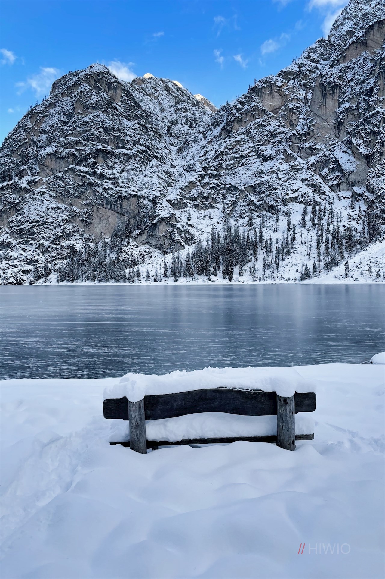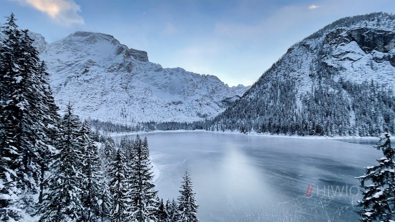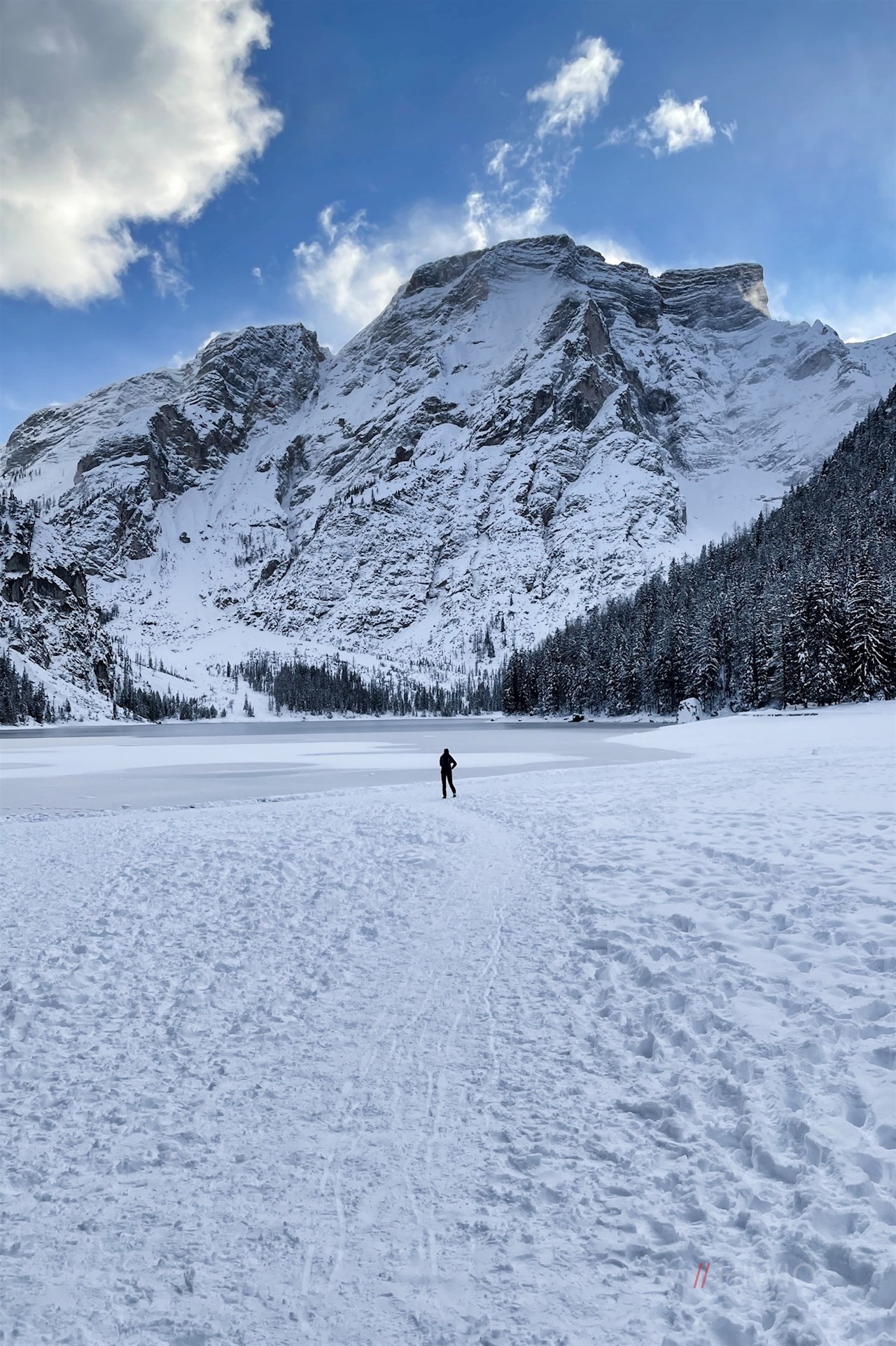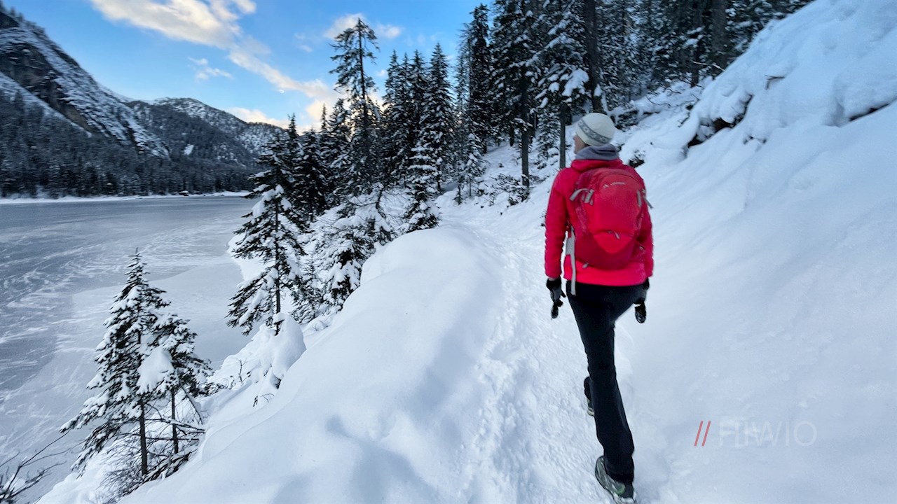 Dem Pragser Wildsee in den Pragser Dolomiten wohnt auch im Winter ein einzigartiger Zauber inne. Wenn seine grün schimmernden Wasser unter einer glitzernden Eisdecke ruhen, führt ein gut ausgetretener Pfad um und über diesen malerischen Bergsee, der wegen seiner Schönheit auch als „Perle der Dolomitenseen“ bezeichnet wird.