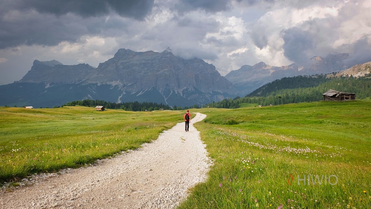 Die Pralongia Hütte, die idyllischen Blumenwiesen unterhalb der Pralongia Hochebene und der malerische Ausblick auf die ringsum aufstrebenden Dolomiten machen diese Wanderung bei St. Kassian zu einem unvergesslichen Erlebnis.