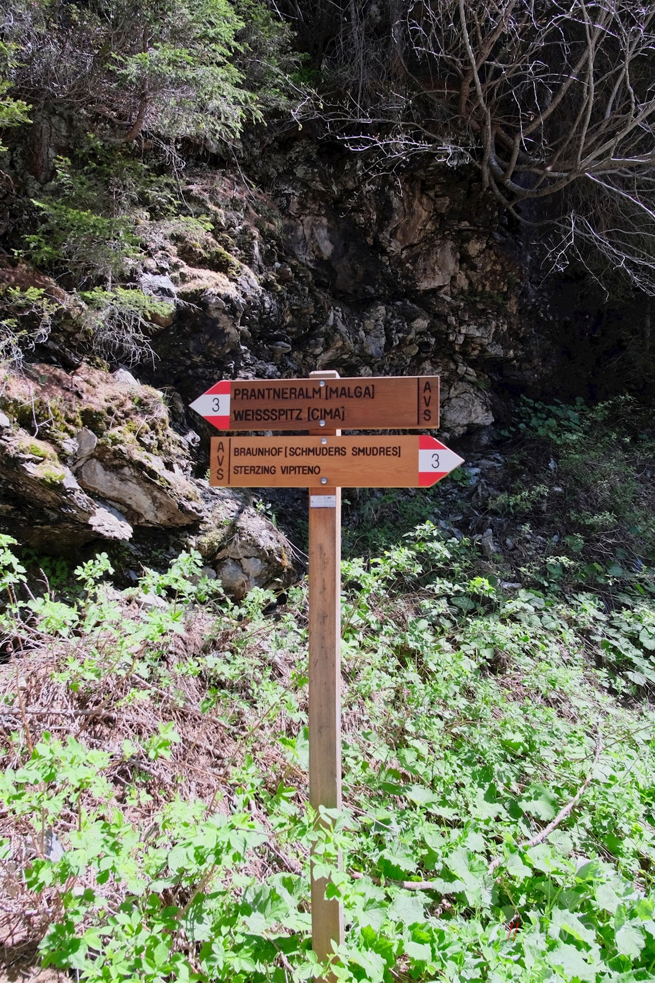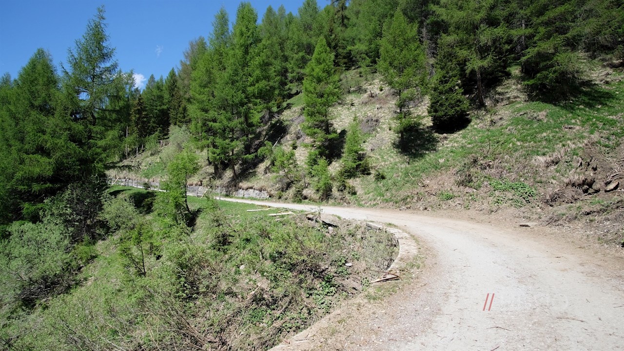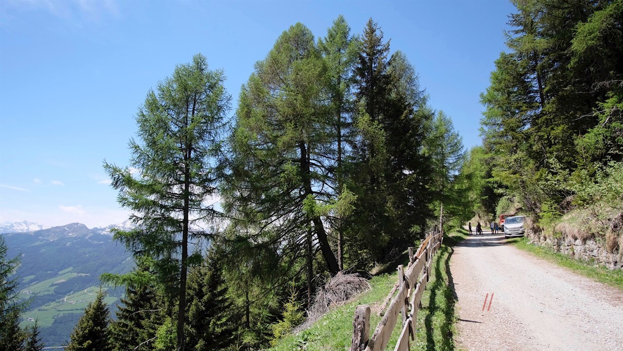 Von hier schlängelt sich ein breiter Forstweg im angenehmen Anstieg durch den schattenverheißenden Nadelwald, der hie und da überraschende Ausblicke auf den Sterzinger Talkessel, den Zinseler, die Telfer Weißen oder den imposanten Tribulaun freigibt.