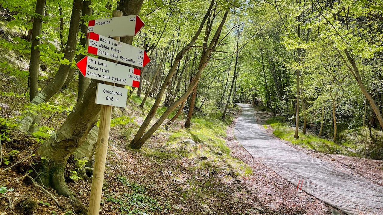 Auf den Genuss dieser traumverlorenen Aussicht folgt der kulinarische: Von der Punta Larici führt der Weg Nr. 422B zur 890 m hohen Bocca Larici hinab, auf der ein Wanderschild den knapp zehnminütigen Anstieg zur Malga Palaer weist. Inmitten einer idyllischen Bergwiese lädt sie wenig später zur genüsslichen Einkehr.