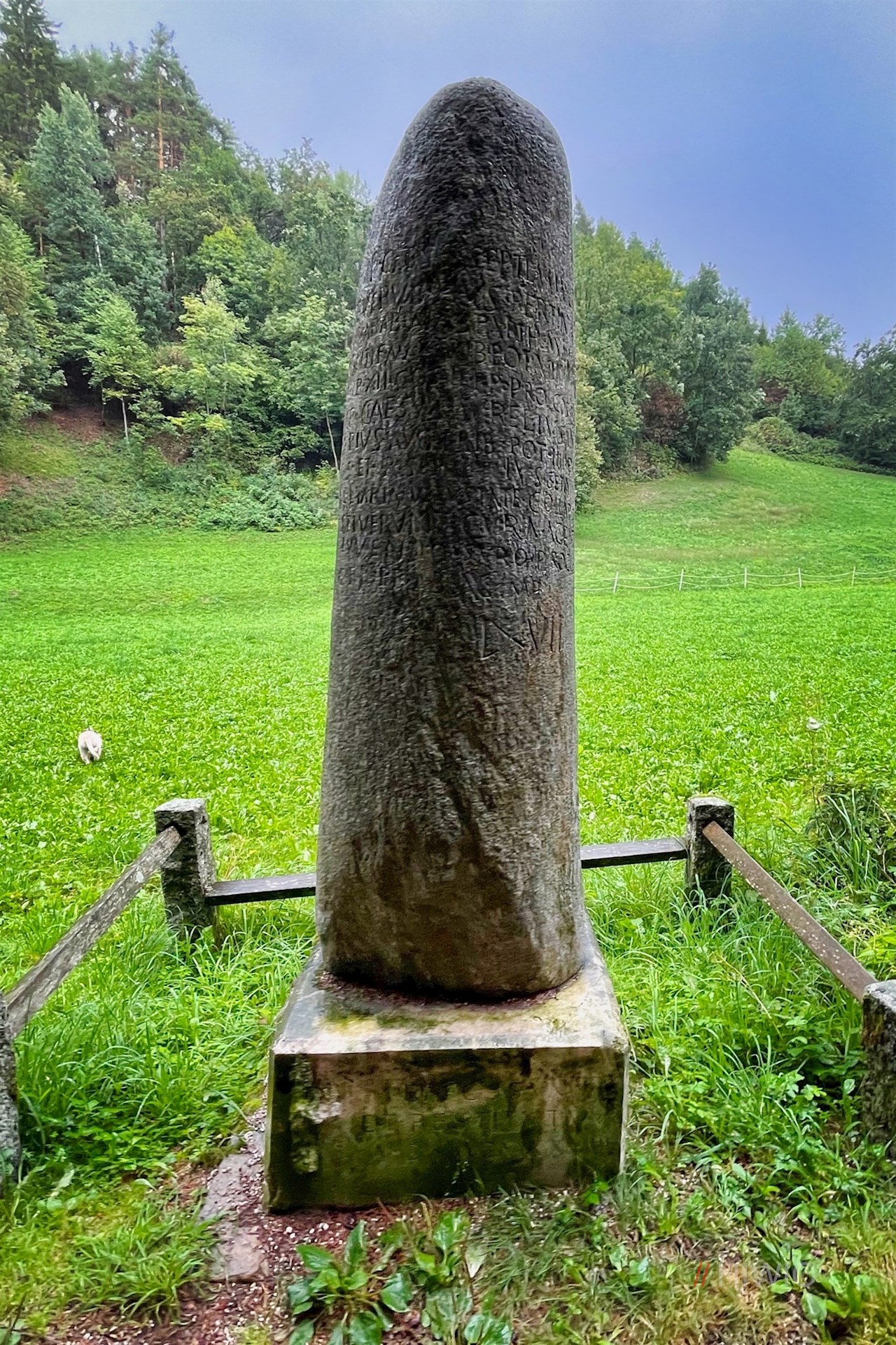 Bei Ehrenburg säumt ein rund 2 m hoher Meilenstein den Weg. Zu diesem Relikt aus römischer Zeit führt eine schöne Wanderung auf dem Römerweg von Kiens.