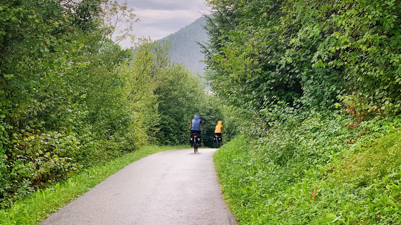 Vom Meilenstein fällt der Römerweg sanft zum Radweg ab, auf dem er zum nahen Ausgangspunkt in Kiens zurückführt.
