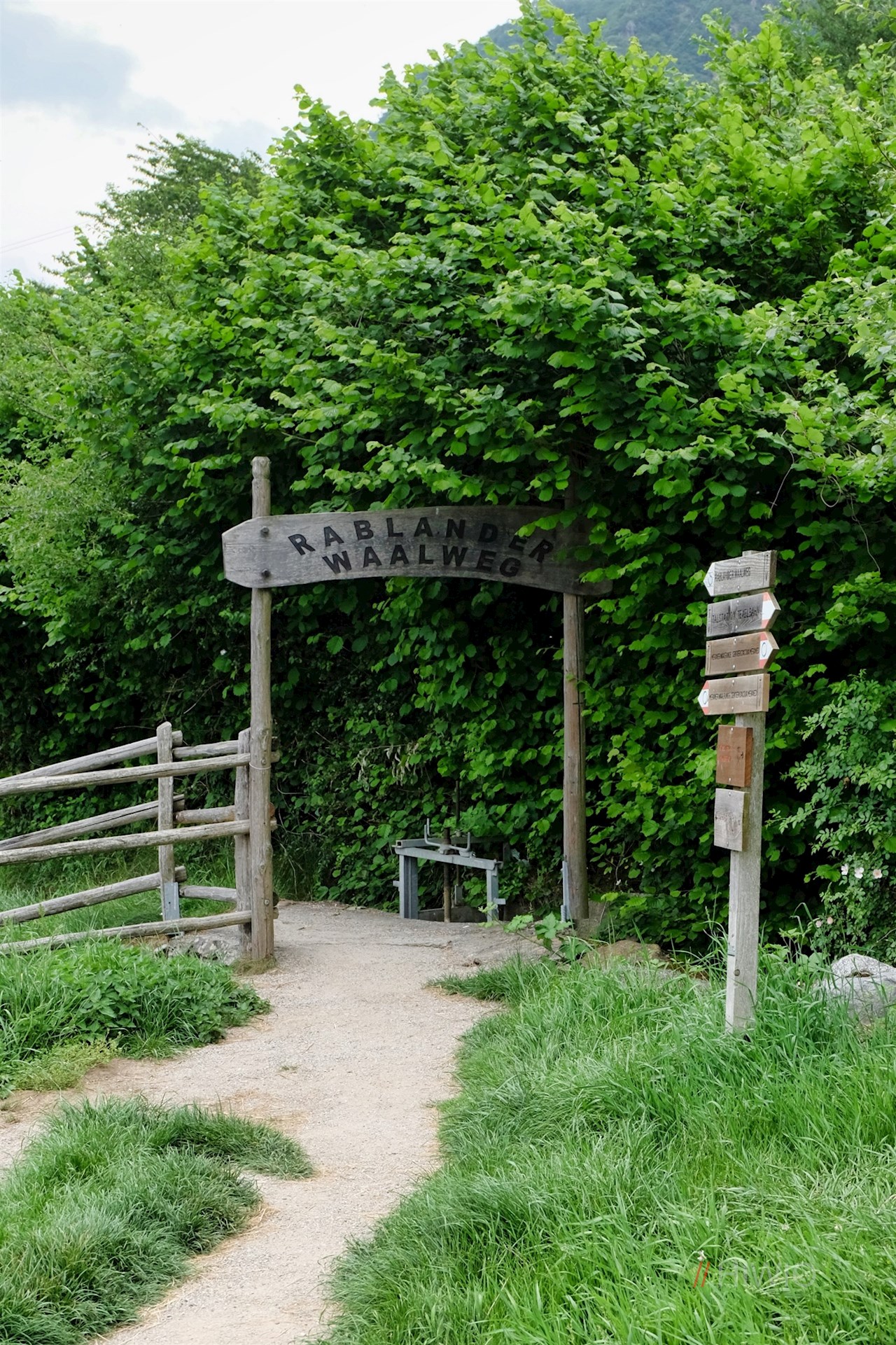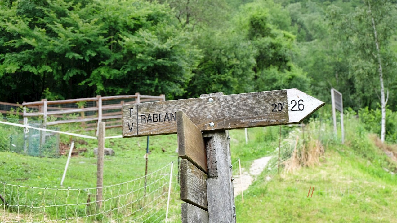 Der asphaltierten Straße nach oben folgend, trifft man am Dorfrand auf die Beschilderung Nr. 91A, die den Weg zum Rablander Waalweg weist. Sein eigentlicher Beginn liegt hinter dem Rablander Sportplatz.