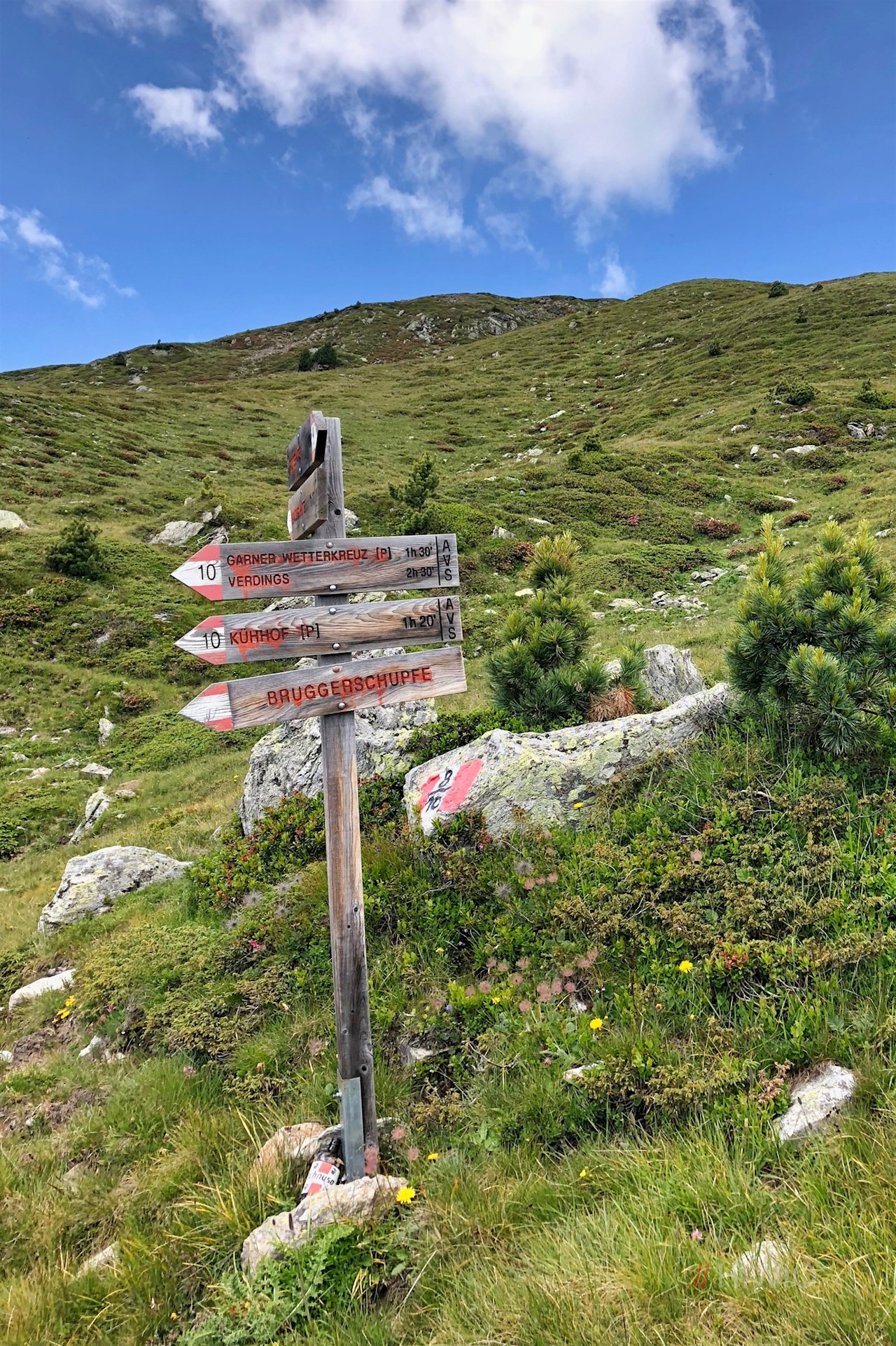 Die Wanderung zur Radlseehütte nimmt am Wanderparkplatz Garner Wetterkreuz oberhalb des gleichnamigen Dorfes ihren Anfang (Anfahrt über Feldthurns und Latzfons).