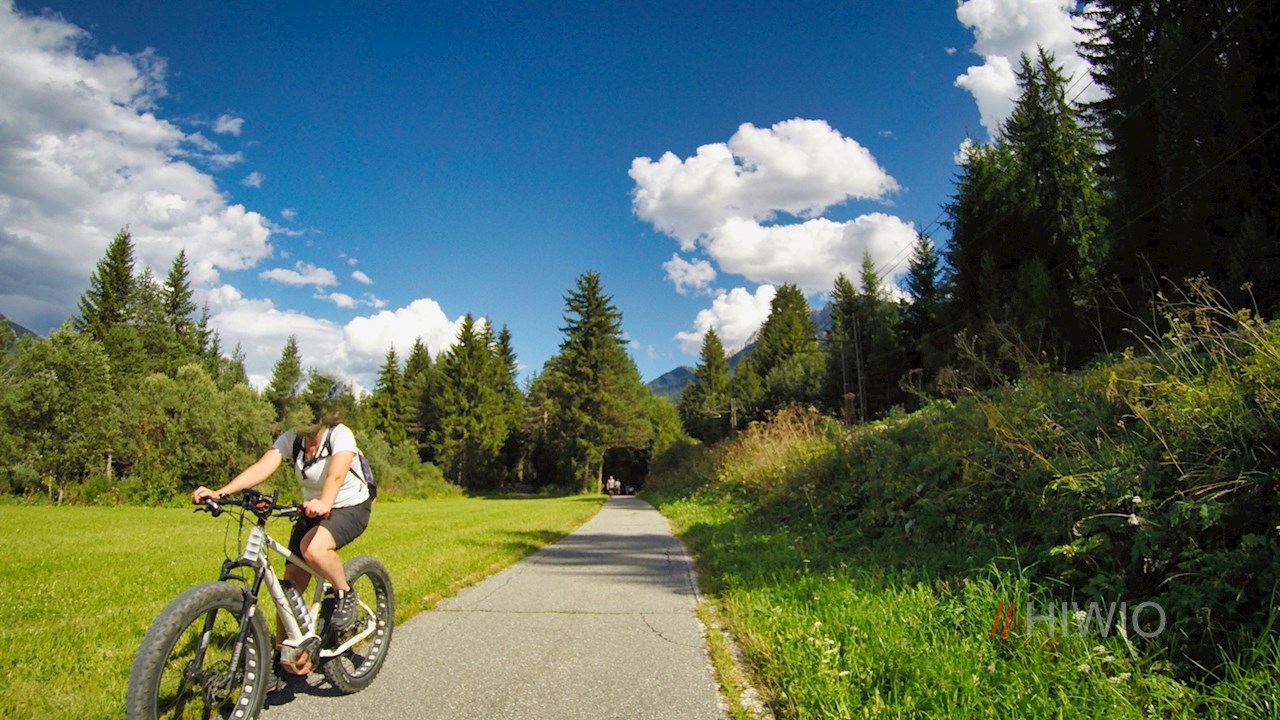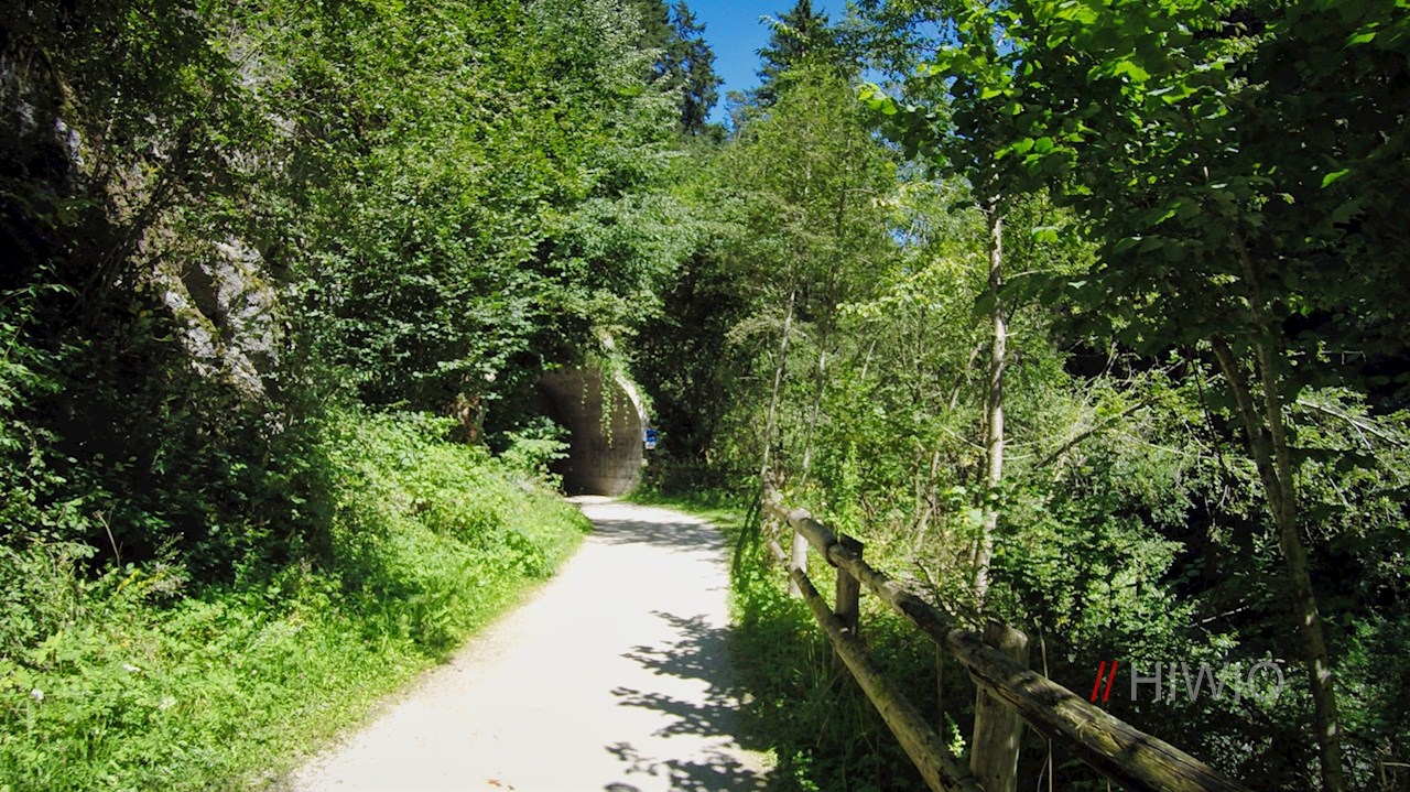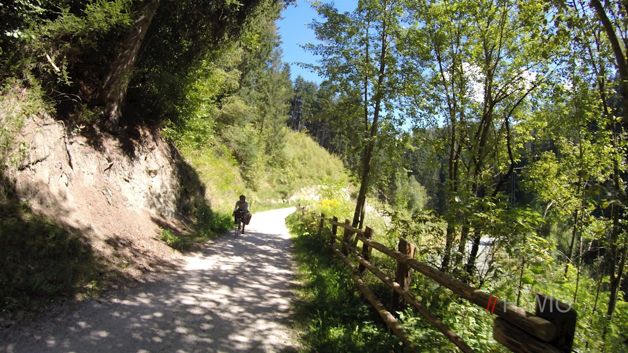 Von Stegen führt der Pustertaler Radweg die Rienz entlang zur Brunecker Sportzone, hinter der er alsbald in einen von Bäumen und Sträuchern umsäumten Schotterweg übergeht. Er schlängelt sich nahezu eben durch die wildromantische Rienzschlucht und passiert dabei eine Holzbrücke und zwei recht lange Tunnels.